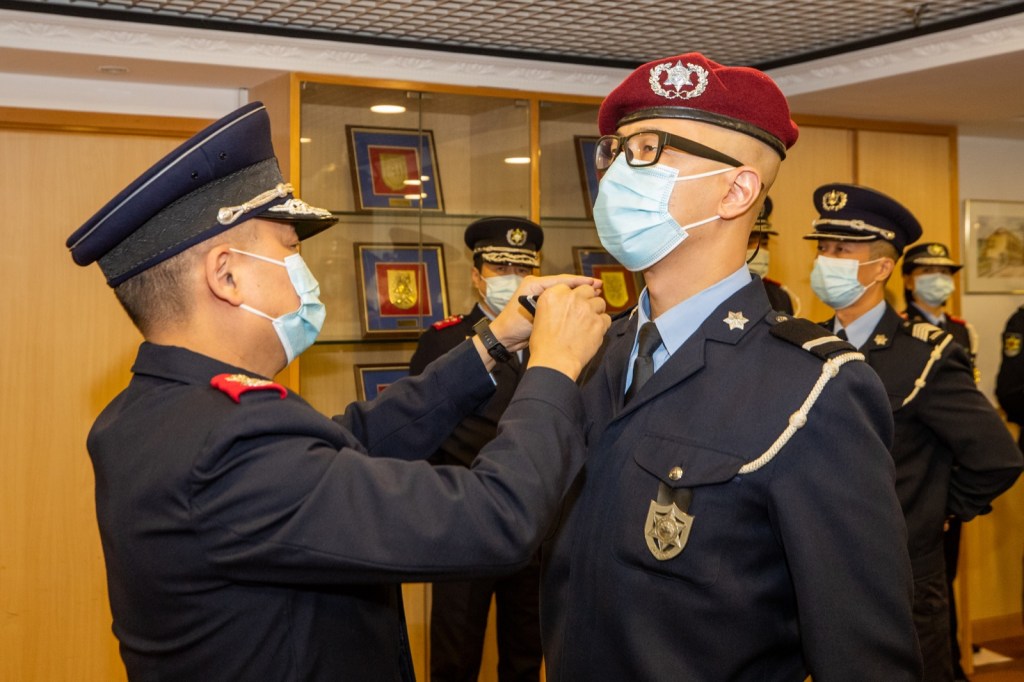 1月26日上午,治安警察局在總部舉行副警長晉升儀式,儀式由吳錦華局長主持,出席儀式的還有黃偉鴻副局長、梁慶康副局長、伍素萍副局長及各部門的主管,為獲晉升副警長人員作出祝賀並戴上新肩章。