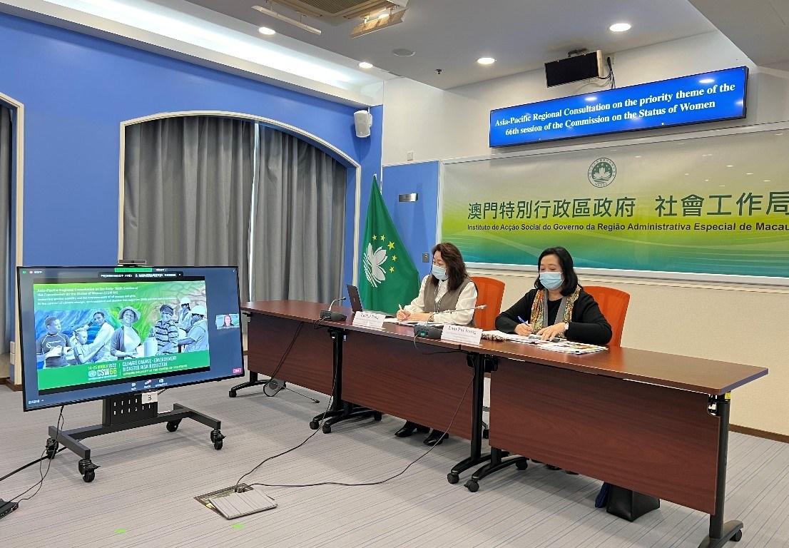 聯合國亞洲及太平洋經濟社會委員會於2月9至10日在總部泰國曼谷舉行聯合國婦女地位委員會亞太地區線上磋商會議,澳門特別行政區政府社會工作局家庭及社區服務廳廳長李麗萍、社區協作處處長林佩嫦以中國澳門代表身份參與。