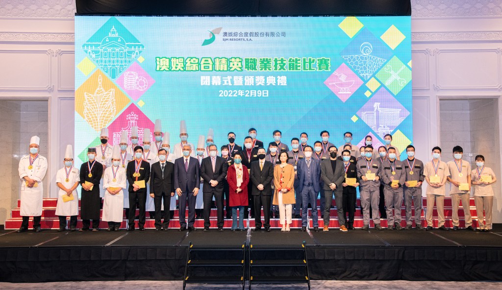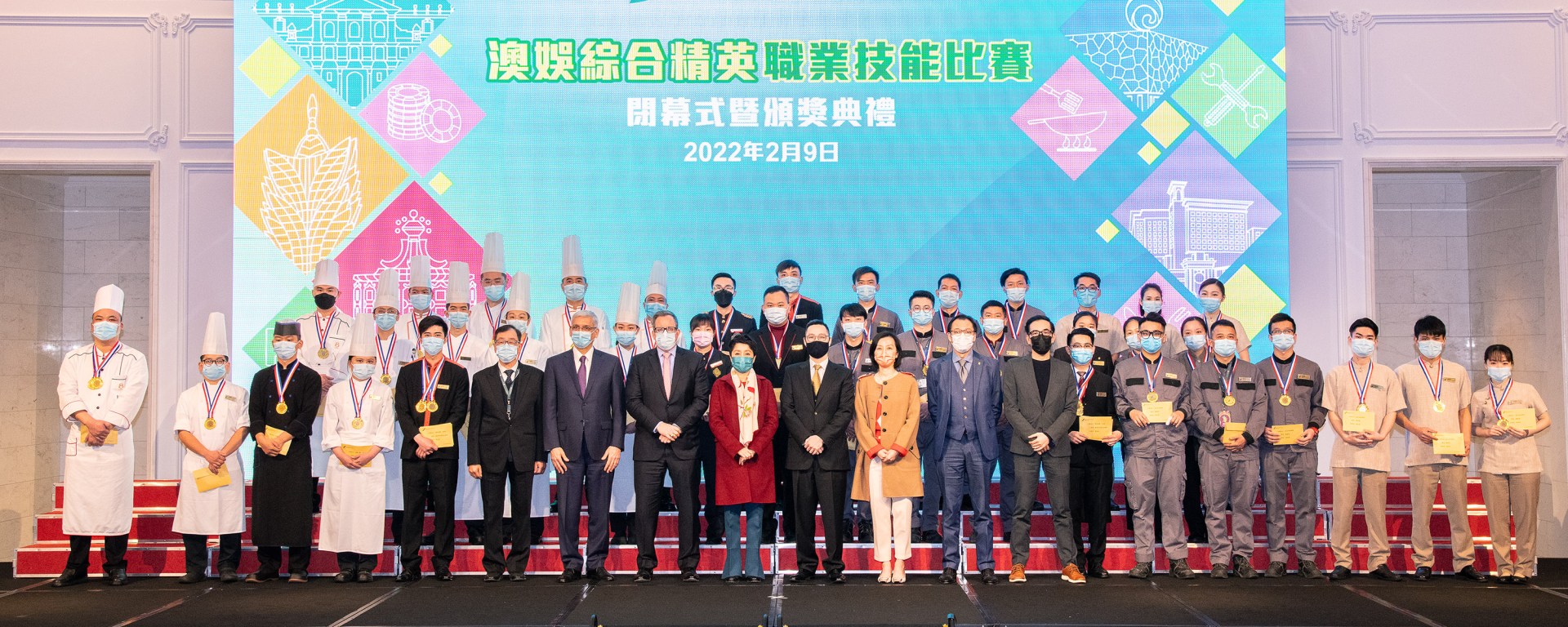 由澳娛綜合度假股份有限公司舉辦的「澳娛綜合精英職業技能比賽」日前順利完成,假上葡京綜合度假村上葡京禮堂舉行頒奬典禮,並向比賽優勝者頒發奬項。是次公司內部技能比賽合共錄得超過160名員工參加,涵蓋五個項目範疇:博彩娛樂、中式餐廚、西式餐廚、酒店房間整理及酒店設施維護。
