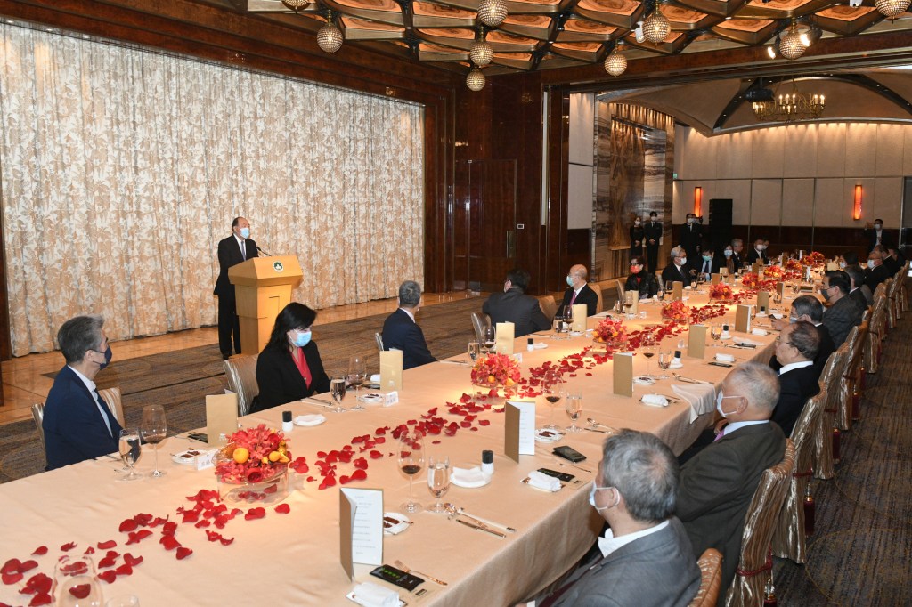 行政長官中午宴請本地中文傳媒負責人,他在致辭時向澳門的新聞工作者致以節日問候,並感謝他們在疫情期間以專業精神和使命擔當,始終堅守崗位,跟進報道特區政府在防控疫情、復甦經濟、保障民生的一系列措施,及時反映社情民意,增進政府與公眾的溝通,讓政府各範疇的工作更有效落實。