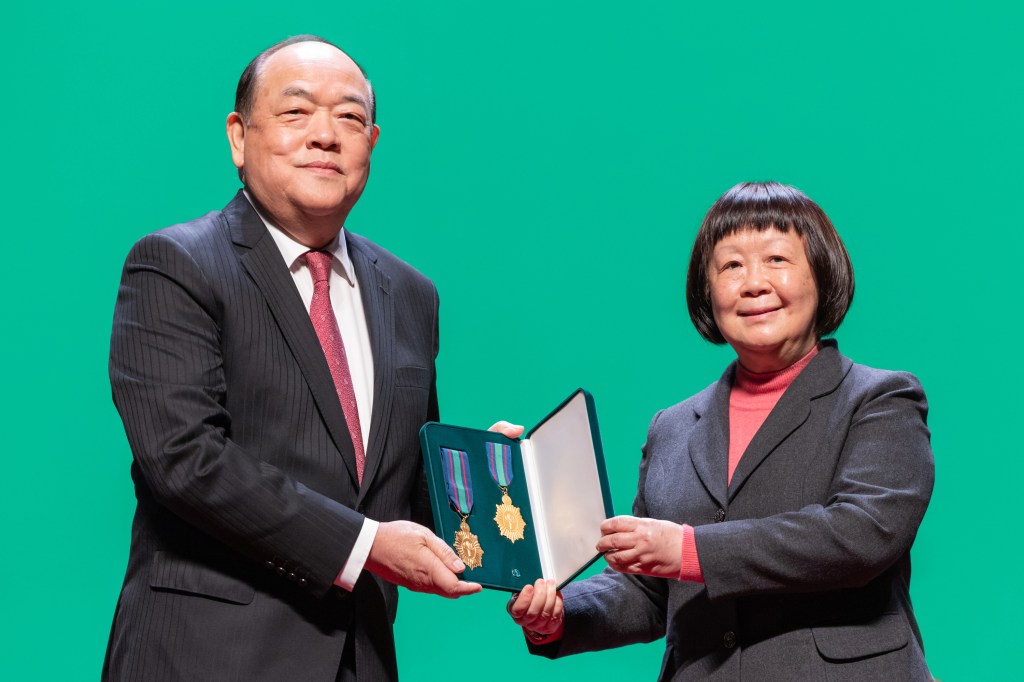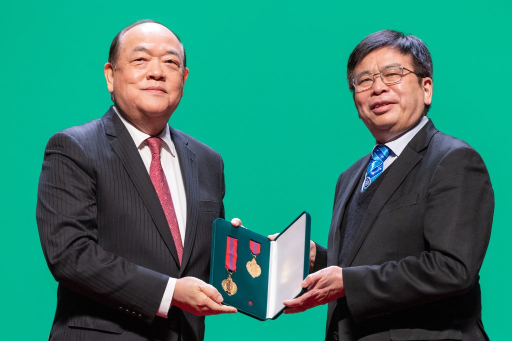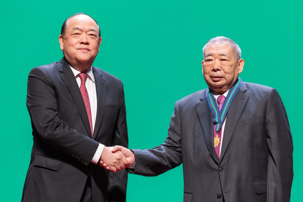 「中華人民共和國澳門特別行政區2021年度勳章、獎章和獎狀頒授典禮」於2月18日下午於文化中心舉行,由行政長官賀一誠主持。