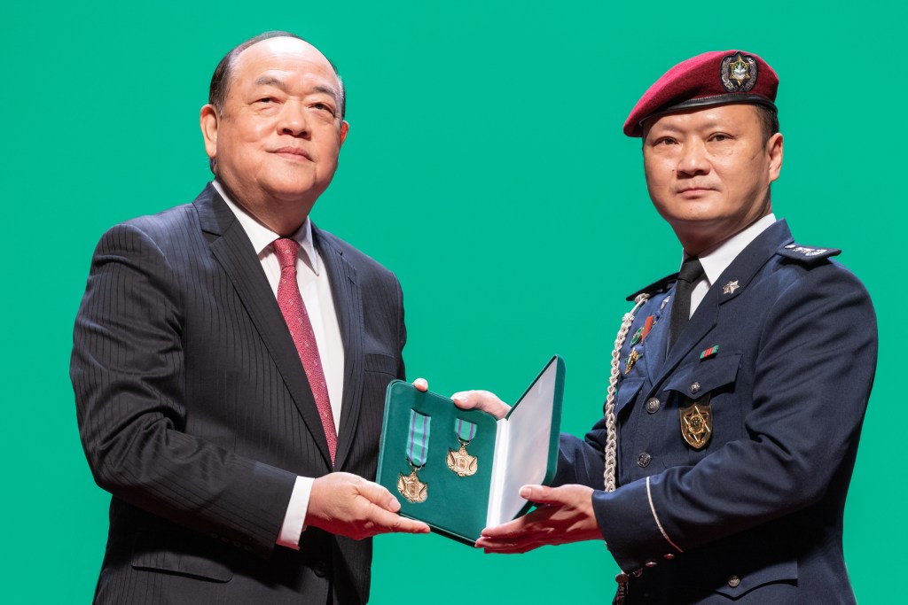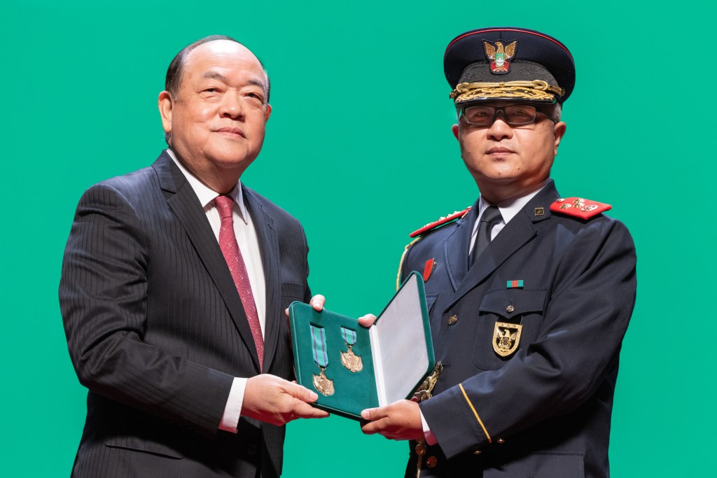 行政長官賀一誠在典禮上向22名人士或實體代表頒授了勳章、獎章和獎狀。