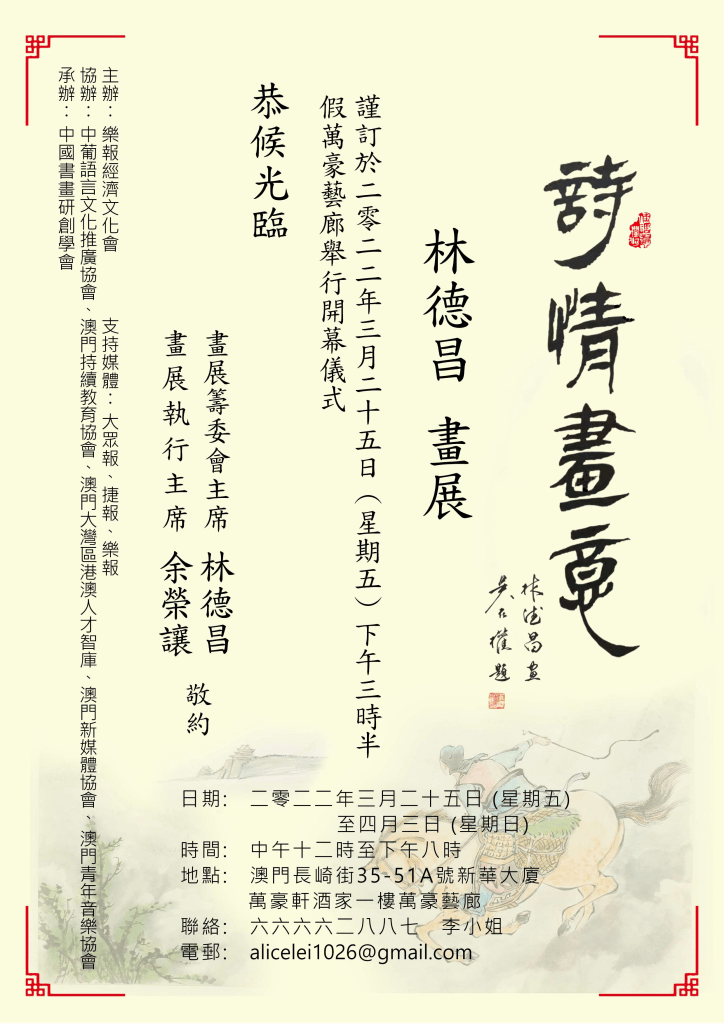 林德昌,廣東中山人,一九四四年出生,幼隨嶺南派畫家關萬里老師、周雲師傅習畫。現為澳門中國書畫研創學會會長、澳門頤園書畫會副理事長、澳門華夏文化藝術學會副會長、澳門業餘藝苑副會長。