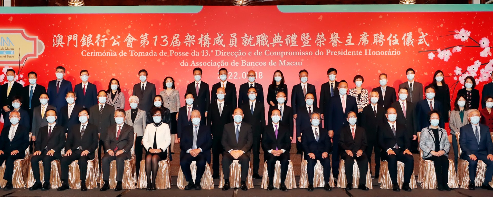 澳門銀行公會日前舉行第十三屆架構成員就職典禮暨榮譽主席聘任儀式,行政長官賀一誠、全國政協副主席何厚鏵、中聯辦主任傅自應、外交公署副特派員王冬、立法會主席高開賢、經濟財政司司長李偉農、全國政協常委馬有禮、金管局主席陳守信等主禮。該會敦聘全國政協副主席何厚鏵為榮譽主席,中國銀行澳門分行則連任主席一職。