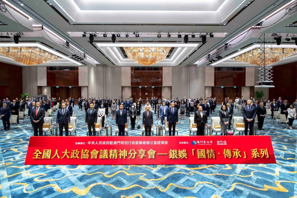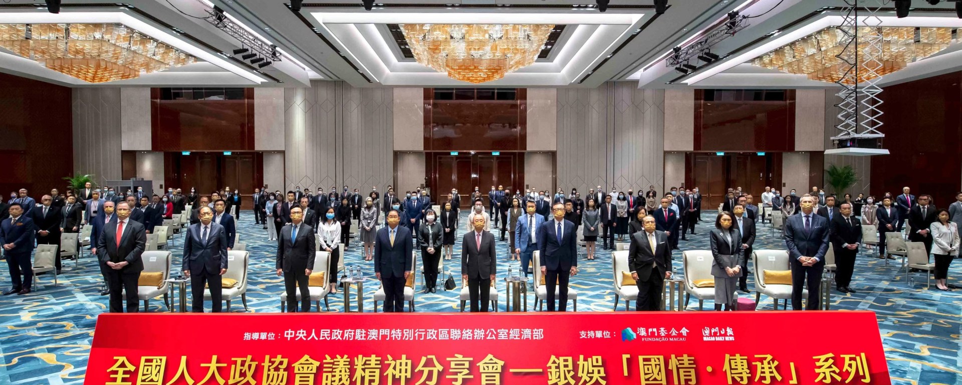 分享會於「澳門銀河」澳門JW萬豪酒店宴會廳舉行,約400名銀娛管理層成員分別透過線上及線下方式參與。為響應澳門特區政府的呼籲,分享會嚴格遵守防疫措施,現場活動邀請了180名管理層成員參與,而其他銀娛及旗下嘉華建材管理層成員,當中包括來自澳門、香港、深圳、橫琴、上海及雲南等地區辦公室,則透過線上方式同步參與。此外,銀娛亦會把當中的精彩內容製作成精華影片,於旗下各物業的員工後勤區播放,讓所有團隊成員都有機會學習「兩會」精神。分享會上,嘉賓們分別介紹了「兩會」的整體概況,深入淺出地分析多項中央政府工作報告及工作重點,包括其對港澳特區貫徹「一國兩制」、高度自治及維持繁榮穩定的全力支持。此外,亦特別就推動「橫琴粵澳深度合作區」建設,促進澳門經濟適度多元發展,融入國家發展大局、貫徹落實「愛國者治澳」與「愛國者治港」的根本原則、增强青少年愛國歷史文化教育,以及澳港兩地的防疫抗疫工作等重要議題分享了個人心得及體會。