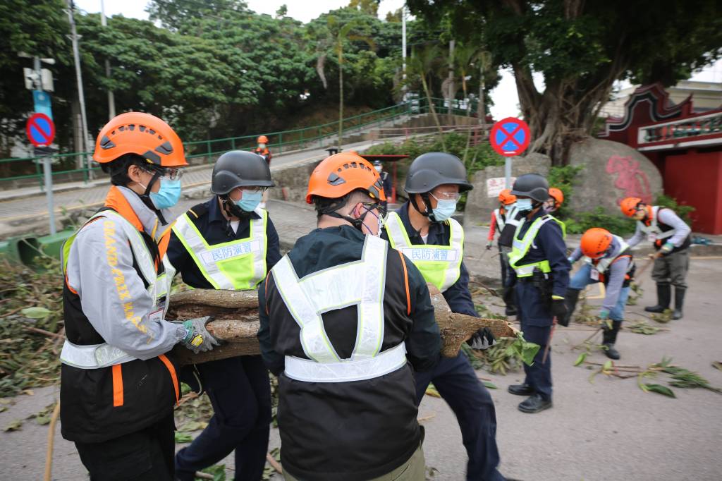 參與演習的社會團體包括(排名不分先後)﹕澳門建築機械工程商會、中國建築(澳門)工程有限公司、澳門街坊會聯合總會、澳門工會聯合總會、澳門婦女聯合總會、澳門歸僑總會、民眾建澳聯盟、澳門社會民生促進會、澳門建造商會、中華總商會青年委員會、中華總商會婦女委員會、澳門中華新青年協會、澳門中華學生聯合總會、澳門志願者總會、澳門物業管理業商會、澳門不動產管理專業技術人員協會、澳門物業管理專業人員協會、澳門餐飲業聯合商會、澳門中小型餐飲業商會、澳門明愛、澳門基督教青年會、路環居民聯誼會、路環荔枝碗村民聯誼會、路環荔枝碗發展會、路環街坊四廟慈善會、漁民互助會、信義福利會、澳門遠洋漁業發展暨船東協會、澳門街坊總會望廈社區中心、泉仁樂家庭綜合服務中心、婦聯樂融家庭綜合服務中心、港澳信義會恩耆中心、聖公會澳門社會服務處、澳門基督教新生命團契、澳門清潔專營有限公司。