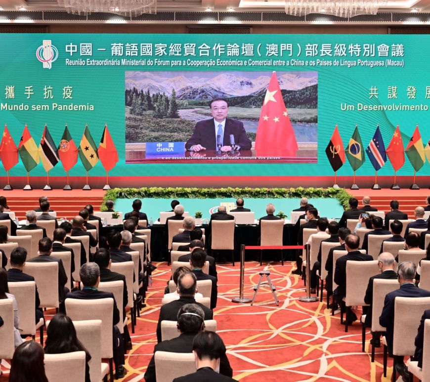 中國——葡語國家經貿合作論壇部長級特別會議於四月十日以線上線下結合形式在北京及澳門舉行,主會場設於澳門中葡商貿合作服務平台綜合體。在新冠病毒肺炎仍於全球為禍下,今次會議主題是「攜手抗疫,共謀發展」,確屬貼近現實,探討發揮澳門平台作用,推動經濟復蘇。在開幕儀式上,中國國務院總理李克強及各成員國或地區的代表分別於線上致辭。
