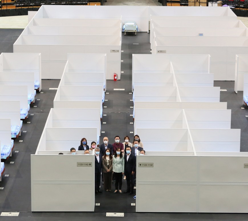 社會文化司歐陽瑜司長、社會文化司司長辦公室何鈺珊主任、體育局潘永權局長、衛生局羅奕龍局長等一行,日前到路氹區視察在澳門東亞運動會體育館、運動員培訓及集訓中心設置的「新型冠狀病毒感染社區治療中心」(方艙醫院)的各項準備工作,及聽取衛生局代表報告相關規劃、佈署和工作的準備情況。歐陽瑜司長聽取滙報及參觀了相關設施後,提出了多項指導意見,務求此一系列的準備工作更為周密。