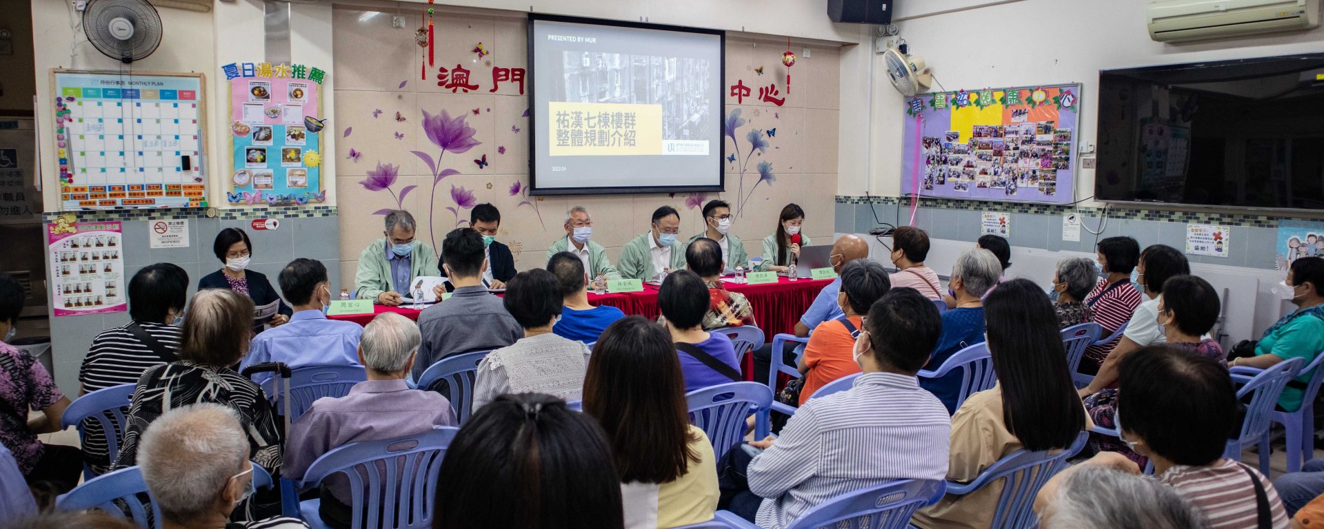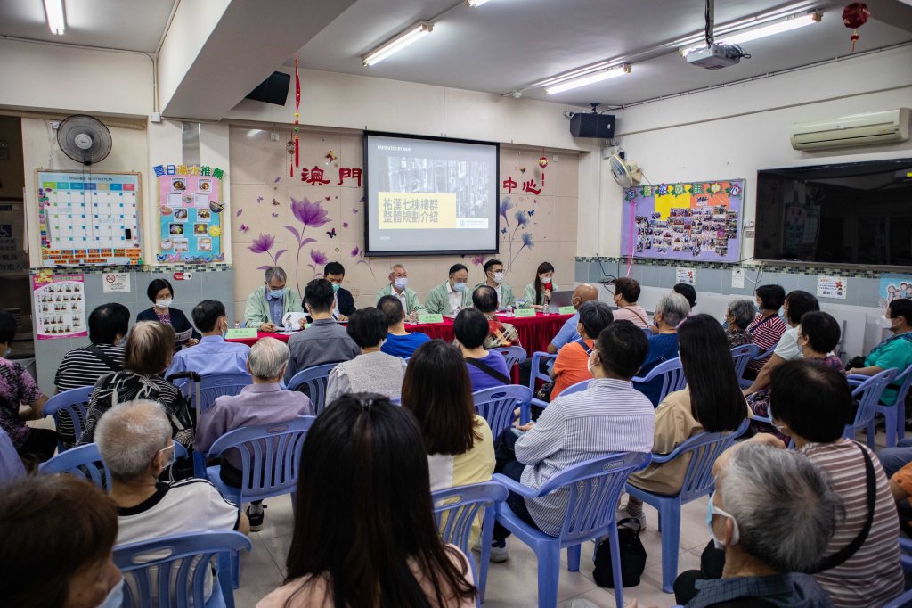 都更公司董事會主席林金城、副主席梁竟成、董事譚志煒、高級建築師陳凱華以及城市規劃師譚凱欣;街總理事長陳家良、副理事長兼北區辦主任周宜心以及約七十名樓群業主出席。