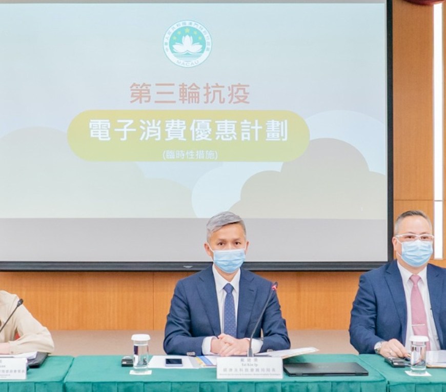 經濟及科技發展局、澳門金融管理局和社會工作局日前舉行聯合新聞發佈會,公佈「第三輪抗疫電子消費優惠計劃」的登記、領取及使用詳情。為提振內部需求,紓緩疫情下居民和商戶的經濟壓力,特區政府推出「第三輪抗疫電子消費優惠計劃」這項臨時性措施。