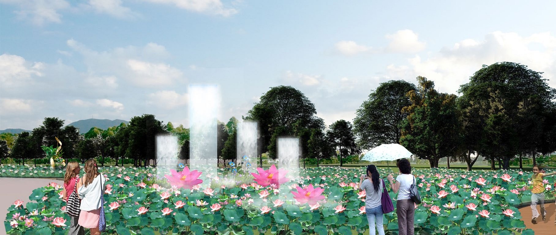 今屆荷花節主題花為淡堇紫色的「小台紅」,花期長,著花密度繁多,花型是花瓣多達一百片的重台型碗蓮。而荷花節花展主題為「荷霧迷離」,透過水霧渲染荷花美態,為本澳盛夏帶來涼意。為配合設計主題,展場龍環葡韻共設置五個特色區域。第一展區「風姿綽約」:以竹為環保和藝術結合的媒介,營造清雅舒適的氛圍,提昇荷花的觀賞意境,並提高大眾的環保意識;第二展區「出水芙蓉」:模擬漫步賞荷的小溪,展現一朵朵清新脫俗的盛放荷花;第三展區「亭亭玉立」:在中心位置設置活動舞臺,形成向心力,吸引觀眾駐足賞花及休憩;第四展區「藕絲織布」:以拉絲模擬細嫩的藕絲,通過現代藝術的表現手法呈現荷藕柔細的一面,並成為具特色的中心景觀;第五展區「流光荷影」:運用透明亞克力和噴霧的組合,描繪出流光瀑布的景象。而整個展場晝夜均安排噴霧效果,豐富大眾對荷花的觀賞體驗。