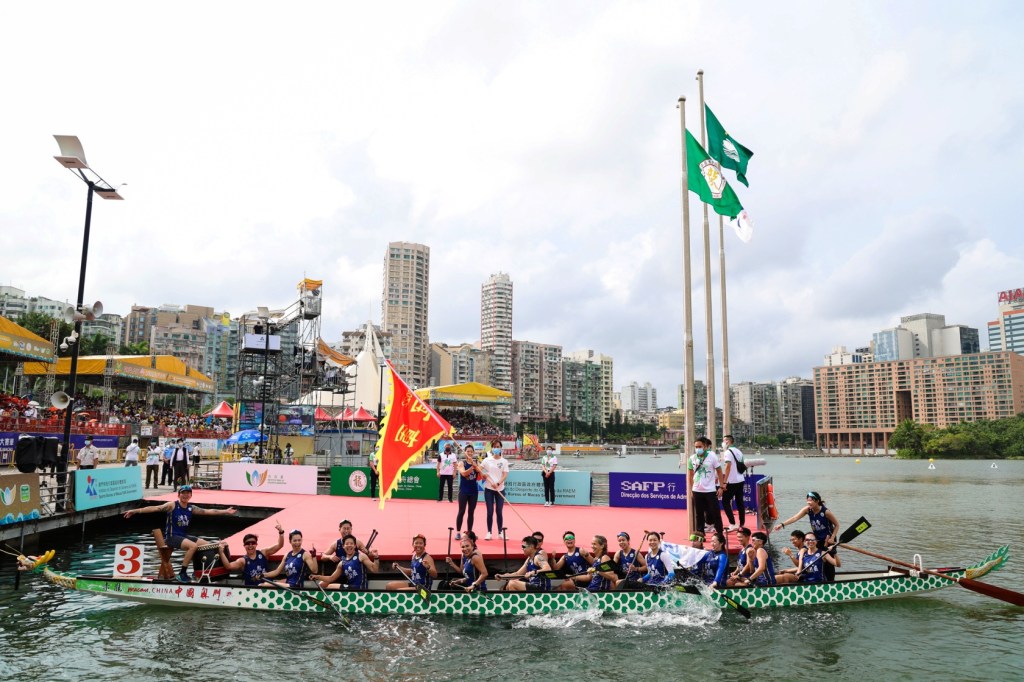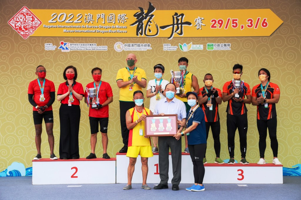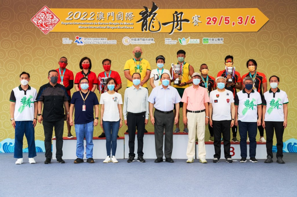 由體育局及中國澳門龍舟總會主辦,市政署及行政公職局協辦的「2022澳門國際龍舟賽」,於6月3日端午節正日在南灣湖水上活動中心上演標準龍公開組(500米)及女子組賽事。經過連場競逐後,澳娛綜合-金禧與澳門青少年發展協會分別勇奪公開組及女子組冠軍。行政長官賀一誠出席活動觀賞龍舟賽事,並主持點睛儀式及頒獎,與市民歡度端午佳節。