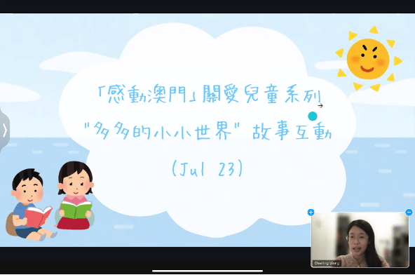 在近日疫情嚴重的日子裏,學童無法上學,更缺乏正常的社交和群體活動,尤其是特殊小朋友被強制留在家中,令他們的家長倍感擔憂和難以處理。有見及此,澳門關愛兒童協會在本年度系列活動「感動澳門關愛兒童系列活動」中臨時加插了一個Zoom 視像活動,邀請香港資深特殊教育導師郭紀璇 (DorDor老師) 和Charling 老師主持。郭紀璇致力於特殊學習需要的師資培訓及家長教育,在復康服務界有較高的聲譽,深受從業人員、學生家長的愛戴和推崇。