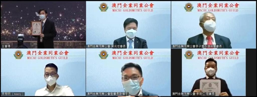 活動邀請到海內外多位珠寶業界專家顧問、商會人士代表參加。會上,香港寶石學協會、澳門金業同業公會及中國地質大學(武漢)珠寶學院三方進行線上線下簽署合作備忘錄的儀式。澳門金業同業公會由李居仁理事長代表與香港寶石學協會廖尚宜主席簽署合作備忘錄,隨後,廖尚宜主席向李居仁頒發「翡翠標準測試方法項目業界顧問」感謝狀。澳門金業同業公會李子豐永遠榮譽會長、葉兆佳會長、謝耀宇監事長、李居元副理事長及李居明代表等參與見證。