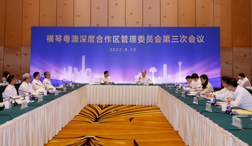 橫琴粵澳深度合作區管理委員會第三次會議於8月12日在橫琴舉行。會議上,雙方共同審議了工作報告、預算草案、投資項目計劃等重要文件,並討論和部署建設下一階段的重點工作。