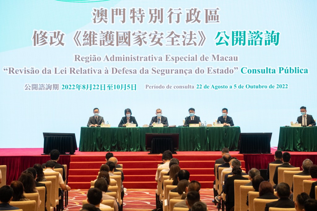 修改《維護國家安全法》公開諮詢期由8月22日至10月5日,期間共舉行八場諮詢會,包括五場業界諮詢及三場公衆諮詢會。三場公衆諮詢分別於9月3日(周六)下午三時、9月6日(周二)和9月16日(周五)的晚上七時半舉行,地點同為中國與葡語國家商貿合作服務平台綜合體會議廳。有意參加的居民可經專題網頁(www.pj.gov.mo/RLDSE/zh/default.html) 或致電8800 6323報名。 除參加諮詢會外,公衆亦可通過信函、電話、傳真或電子方式對諮詢文本內容提出意見或建議。