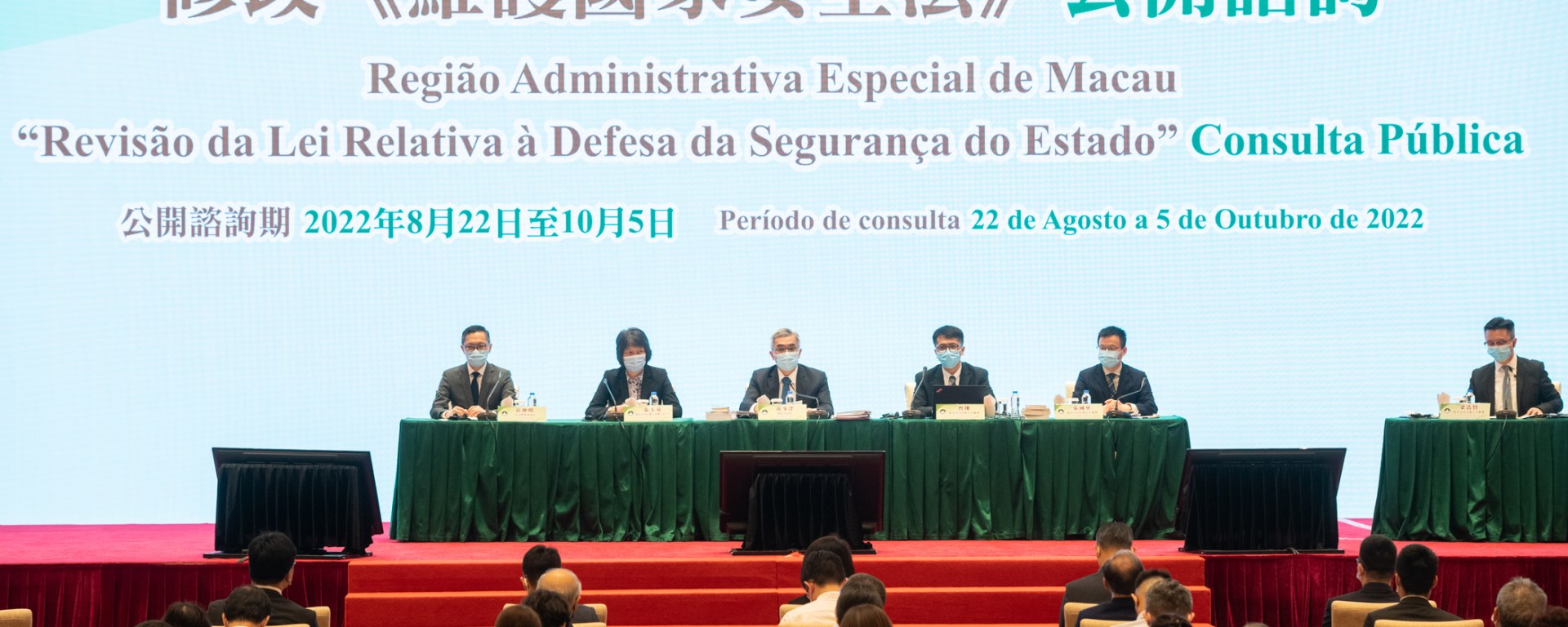 修改《維護國家安全法》公開諮詢期由8月22日至10月5日,期間共舉行八場諮詢會,包括五場業界諮詢及三場公衆諮詢會。三場公衆諮詢分別於9月3日(周六)下午三時、9月6日(周二)和9月16日(周五)的晚上七時半舉行,地點同為中國與葡語國家商貿合作服務平台綜合體會議廳。有意參加的居民可經專題網頁(www.pj.gov.mo/RLDSE/zh/default.html) 或致電8800 6323報名。 除參加諮詢會外,公衆亦可通過信函、電話、傳真或電子方式對諮詢文本內容提出意見或建議。