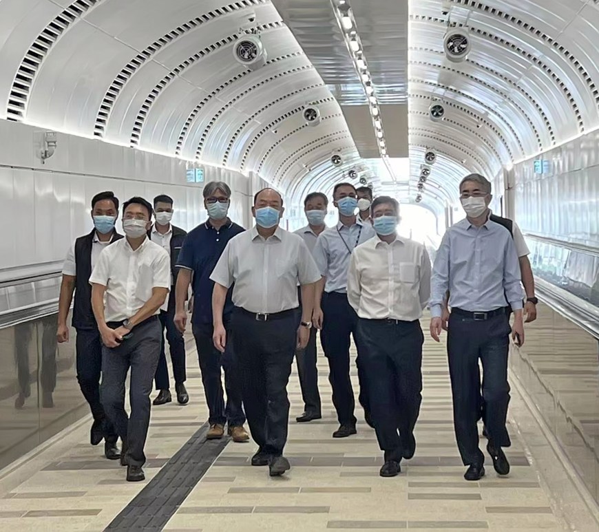 行政長官賀一誠日前在行政法務司司長張永春和運輸工務司司長羅立文等官員陪同下視察了環松山步行系統主體工程的狀況。