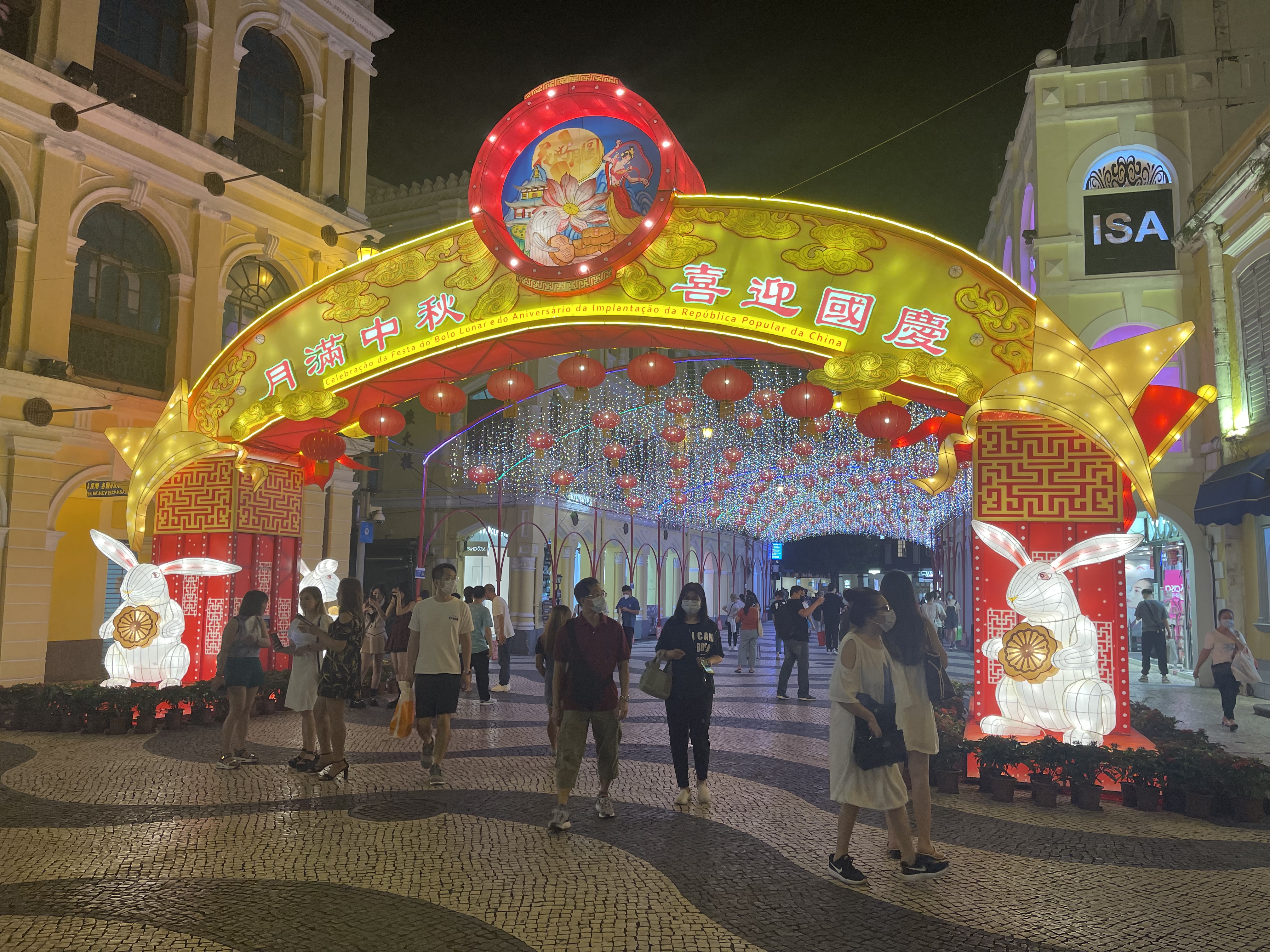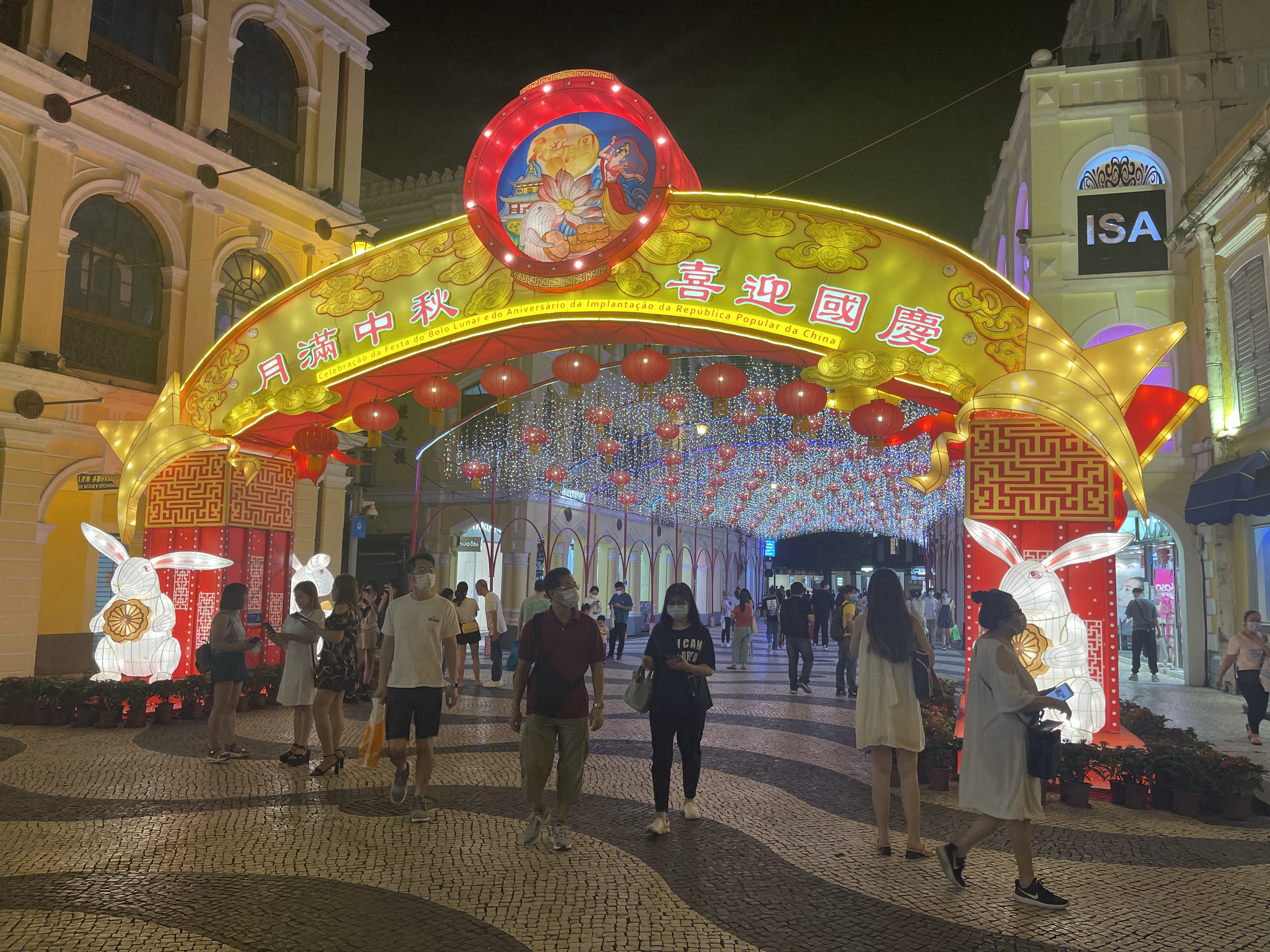 但可惜疫情的陰霾仍未因節日氣氛而消除,一連三天中秋假期,遊客區域例如大三巴的人流與平時相若,在日間顯得冷清,不少業者反映生意比平時少逾一半,內地疫情反覆對澳門旅遊業也造成一定影響,影響旅客出行意慾。商家期待國慶黃金周假期,並希望當局能放寬通關核檢要求,方便旅客蒞澳。