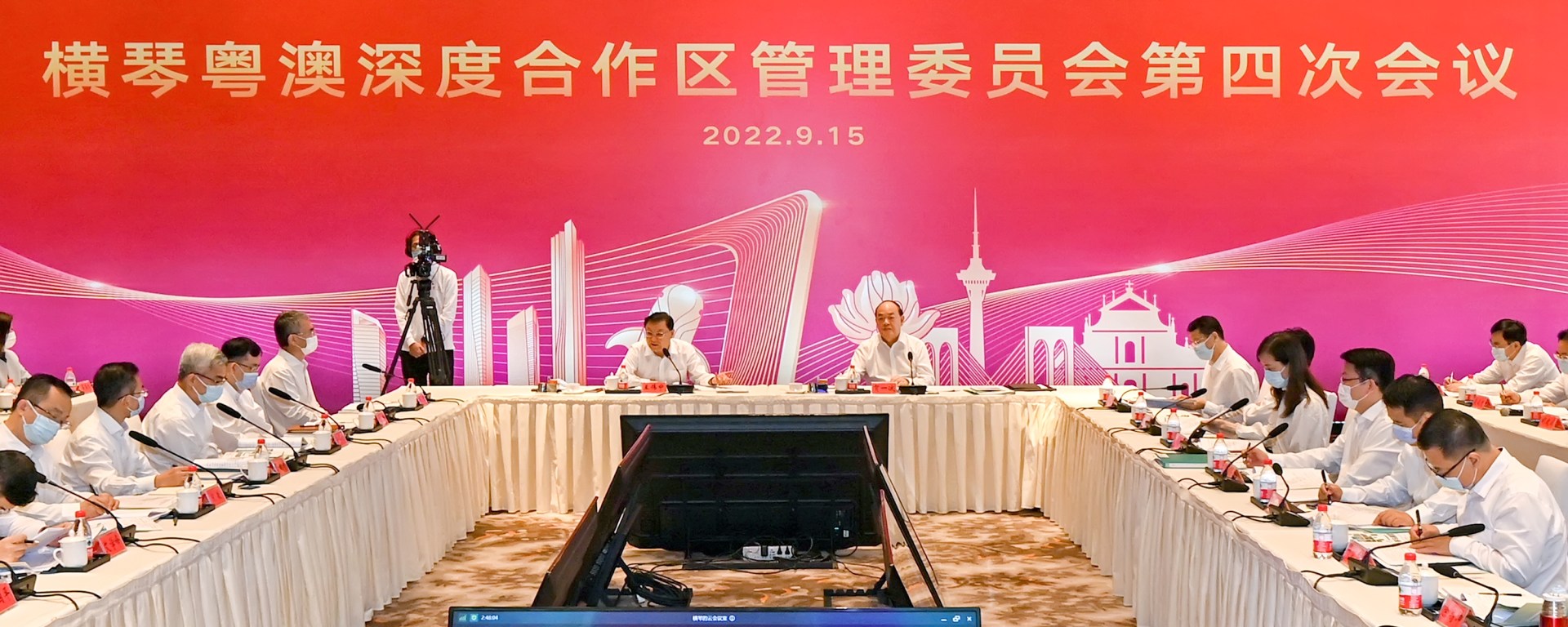 橫琴粵澳深度合作區管理委員會第四次會議於9月15日在橫琴舉行。會議上,雙方討論和回顧深合區執委會一年來的工作情況,共同審議了深合區未來的發展規劃,並聽取下一步工作建議的匯報。