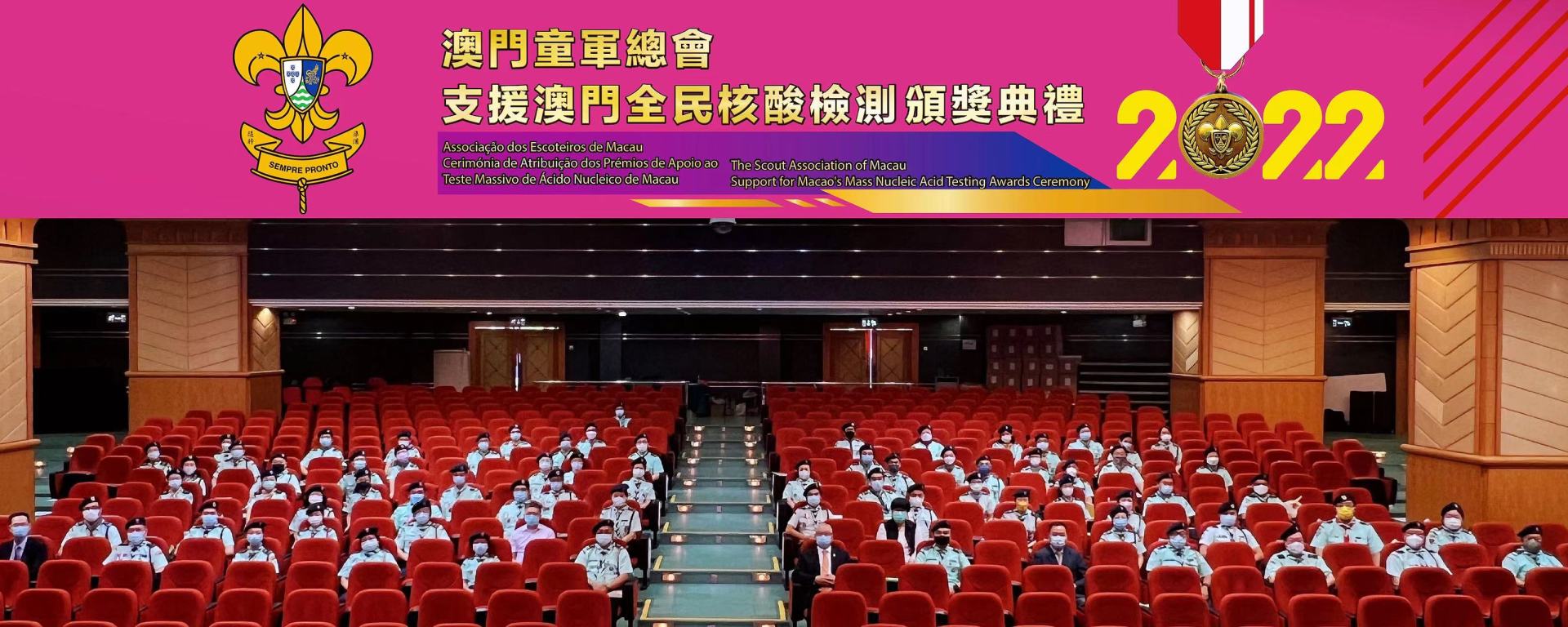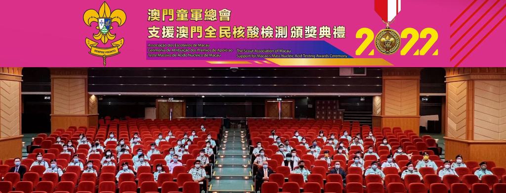 澳門童軍總會九月十八日假澳門濠江中學何賢紀念堂舉辦「澳門童軍總會支援澳門全民核酸檢測頒獎典禮」,向一眾童軍頒發特別任務紀念獎章、感謝狀及紀念布章,對所有參與澳門全民核酸檢測支援工作的童軍人士,給予高度的肯定和表揚,共一百一十六位童軍人士獲嘉許。