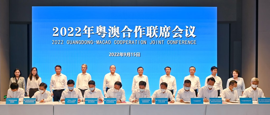 2022年度粵澳合作聯席會議於9月15日在橫琴舉行,行政長官賀一誠和廣東省省長王偉中分別率領兩地政府代表團出席會議。雙方總結了過去一年的粵澳工作,均肯定合作卓有成效,各領域都取得顯著進展。雙方展望,紮實推動粵澳在各領域上的合作,攜手高質量推進粵港澳大灣區建設和橫琴粵澳深度合作區建設,推動粵澳合作向高水平、深層次、多領域的新階段發展。