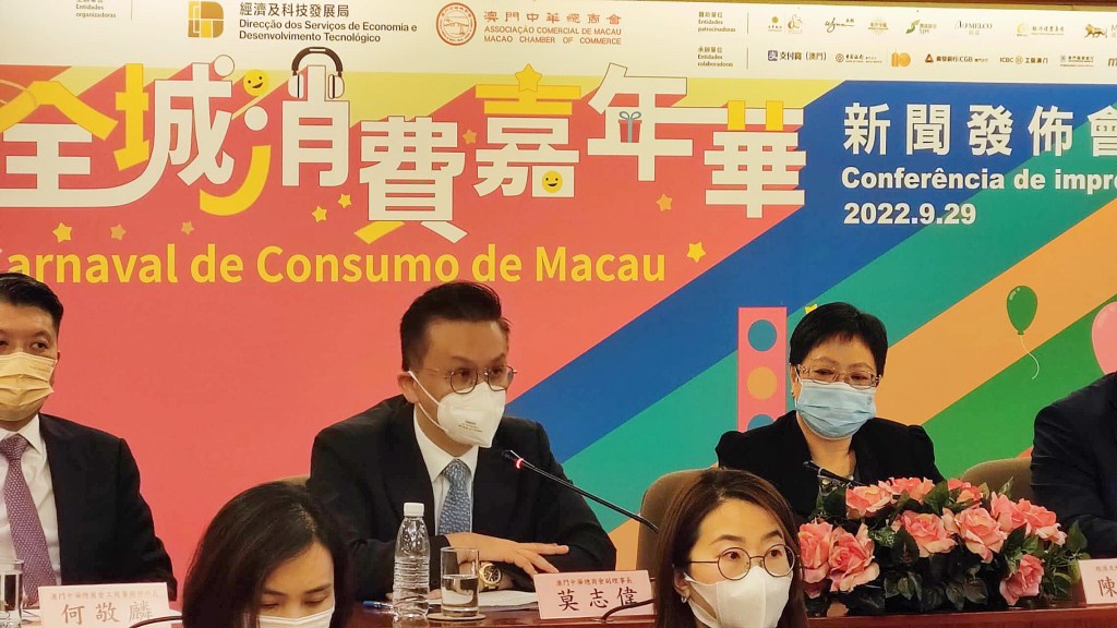 特區政府為應對疫情推出的「2022年百億抗疫援助措施」正陸續落實。其中,經濟及科技發展局與澳門中華總商會將合辦大型促進消費活動「2022年全城消費嘉年華」,並於日前在澳門中華總商會大廈五樓舉行新聞發佈會,介紹活動詳情。