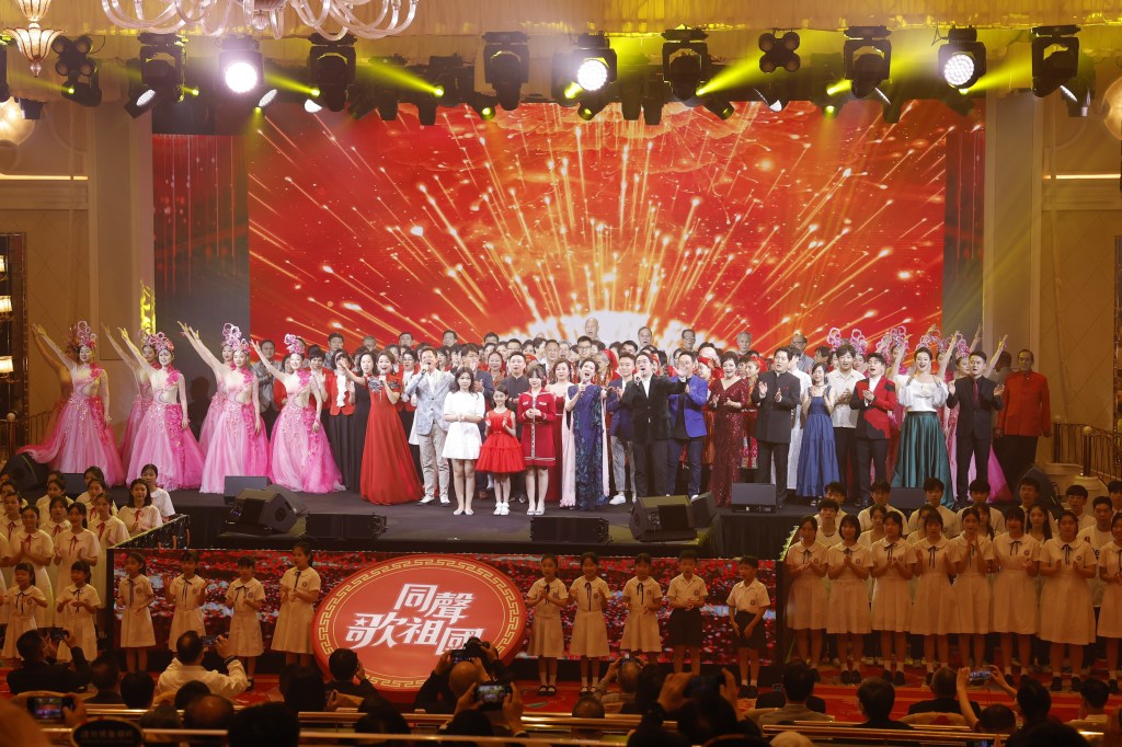 《同聲歌祖國——澳門各界慶祝新中國成立七十三周年暨喜迎二十大文藝晚會》由中央政府駐澳門聯絡辦公室宣傳文化部、澳門特區政府文化局指導,澳門中華總商會、澳門工會聯合總會、澳門街坊會聯合總會、澳門婦女聯合總會、澳門歸僑總會、澳門中華教育會、澳門青年聯合會、澳門中華學生聯合總會、澳門中華新青年協會、澳門公務員團體「雙慶」籌委會聯合主辦、永利關愛基金會特別支持。澳門蓮花衛視、澳門中華文化聯誼會、澳門中華優秀傳統文化協會、福建大劇院、珠海演藝集團、永利澳門共同承辦。中央政府駐澳門聯絡辦公室副主任嚴植嬋、澳門立法會主席高開賢、外交部駐澳門特派員公署副特派員孫向陽、全國政協常委梁華、全國政協港澳臺僑委員會副主任賀定一,澳門特區政府、澳門中聯辦有關部門及晚會主辦、承辦單位負責人與澳門各界500餘名嘉賓代表一起觀看演出。