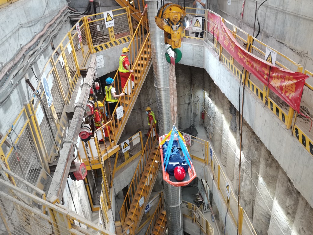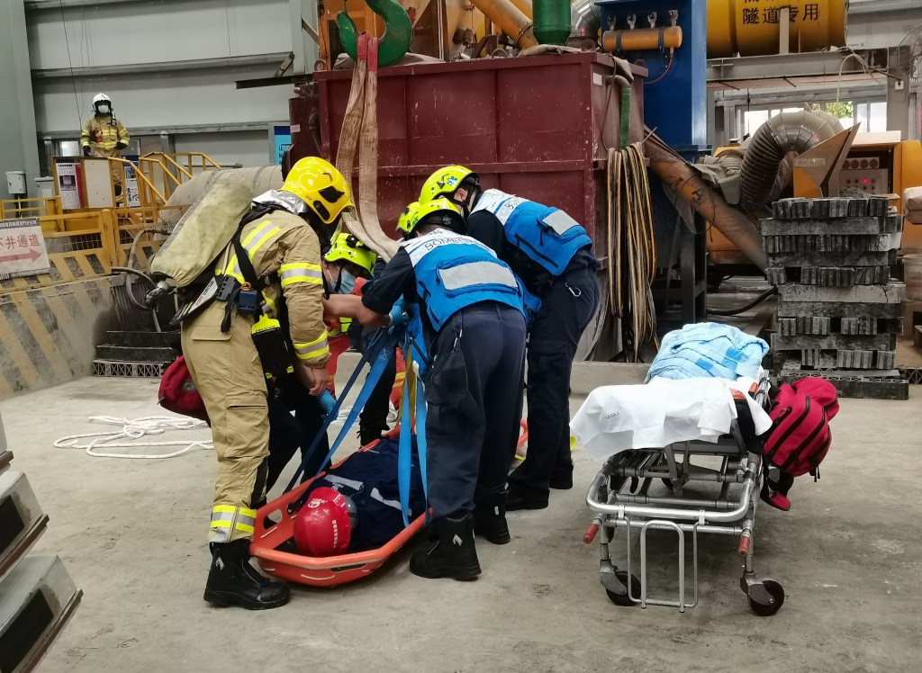 是次演練內容模擬施工過程中,隧道內有工人出現突然不適情況且失去行動能力,需緊急送出隧道及接受救急治療。地盤安全主任接報後立即按應急預案通報消防局、勞工事務局、業主和監理單位,同時由現場應急小組組織救援工作和協助全員疏散,並安排專業人員對隧道內的安全作評估,確定情況後,再由消防人員進入隧道進行氣體檢測,排除其他險情。
