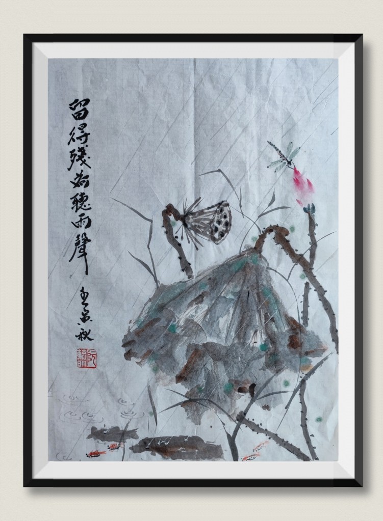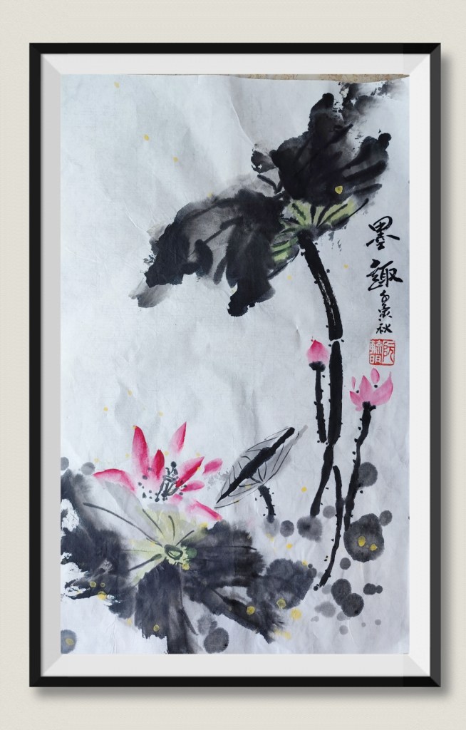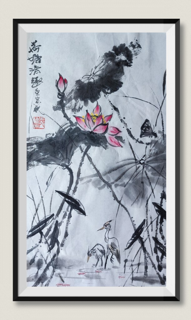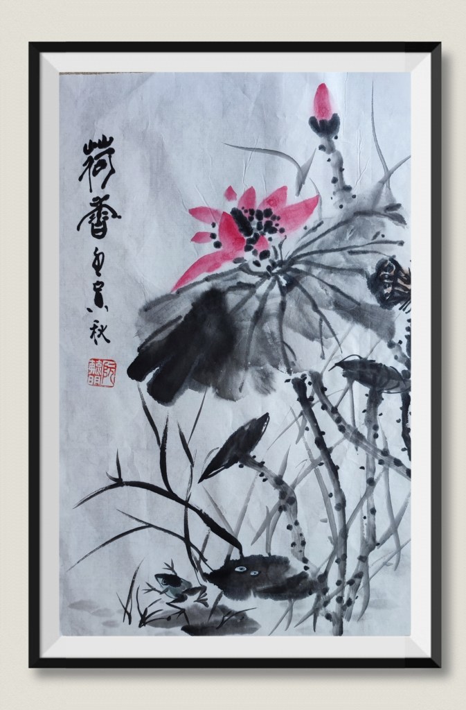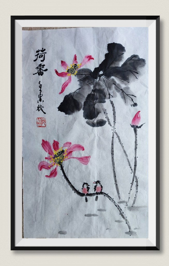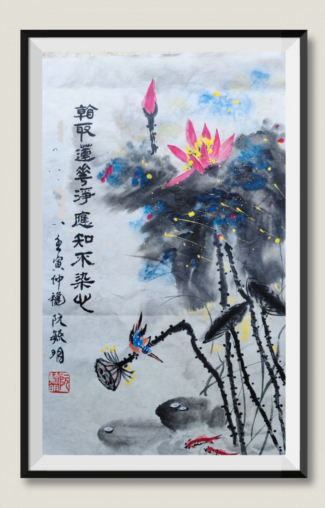 日前筆者在一次茶聚中偶遇阮生,見他風采依然,筆者驀然向他求十幅荷花作品以給讀者分享,他微笑道:習畫不足七年,小學雞一名,只怕失禮老師,失禮讀者而已。