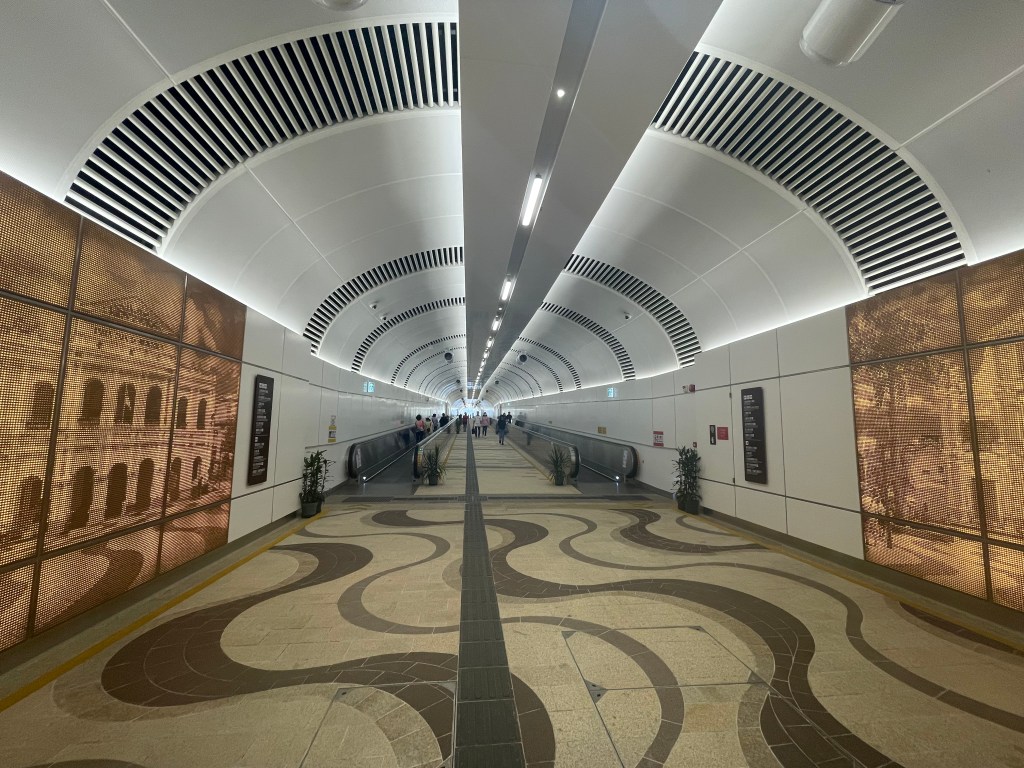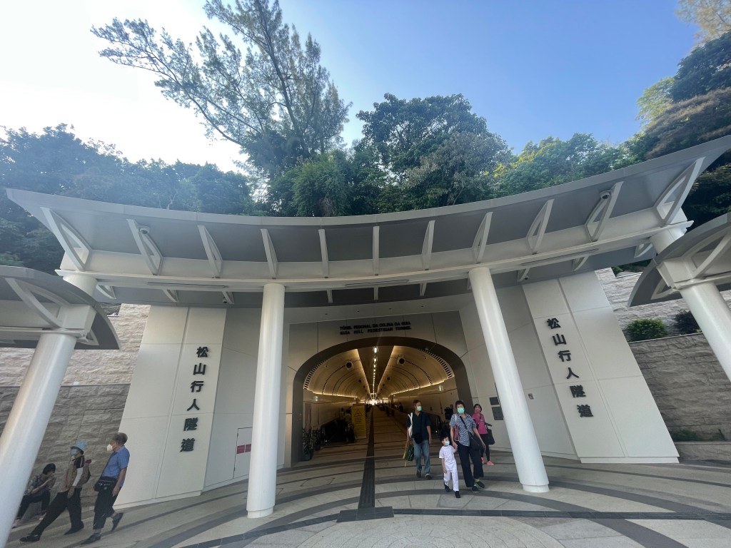 環松山步行系統,又稱松山行人隧道,於10月1日正式啟用。行人隧道出入口一端位於羅理基博士大馬路現有油站對面,另一端位於現時二龍喉公園環境資訊中心位置。環松山步行系統的建造貫通了松山、連接高士德大馬路一帶與新口岸區周邊的通道,是一項有益於廣大居民的民生工程,大大縮減了行人出行的距離,步行系統也進一步完善了區內步行環境,實實在在地回應了市民安全便捷的出行需求。