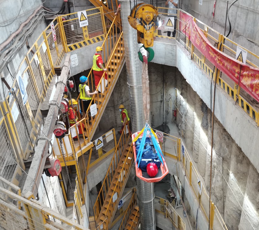 為加強施工人員對狹小空間事故之應對能力,公共建設局聯同消防局、勞工事務局及承建單位日前於鄰近教科文中心新口岸污水截流管工程之始發井施工現場進行應急救援演練。