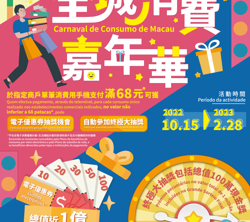 特區政府為應對疫情推出的「2022年百億抗疫援助措施」正陸續落實。其中,經濟及科技發展局與澳門中華總商會將合辦大型促進消費活動「2022年全城消費嘉年華」,並於日前在澳門中華總商會大廈五樓舉行新聞發佈會,介紹活動詳情。
