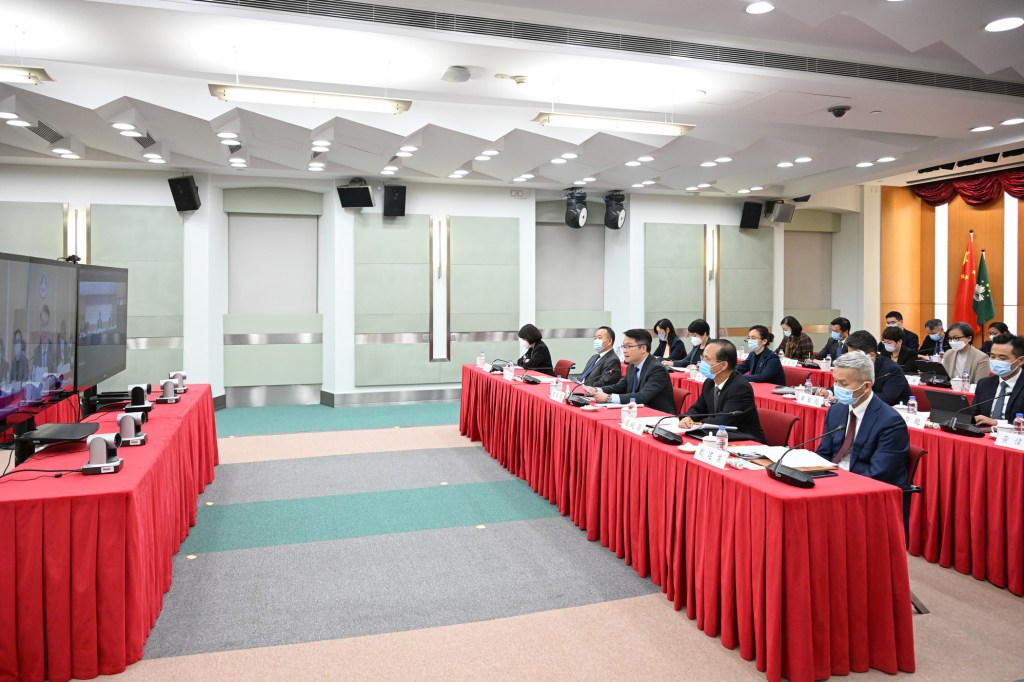 國家發展改革委、國務院港澳辦、外交部、教育部、司法部、商務部、文化和旅遊部、人民銀行、國資委、海關總署、銀保監會、中醫藥局、中央政府駐澳門聯絡辦、外交部駐澳門特派員公署,以及澳門特區政府行政法務司、經濟財政司、保安司、社會文化司、運輸工務司、政策研究和區域發展局、澳門基金會、經濟及科技發展局、財政局、旅遊局、澳門貿易投資促進局、澳門金融管理局、教育及青年發展局、文化局、衛生局、藥物監督管理局、澳門投資發展股份有限公司有關人員參加會議。