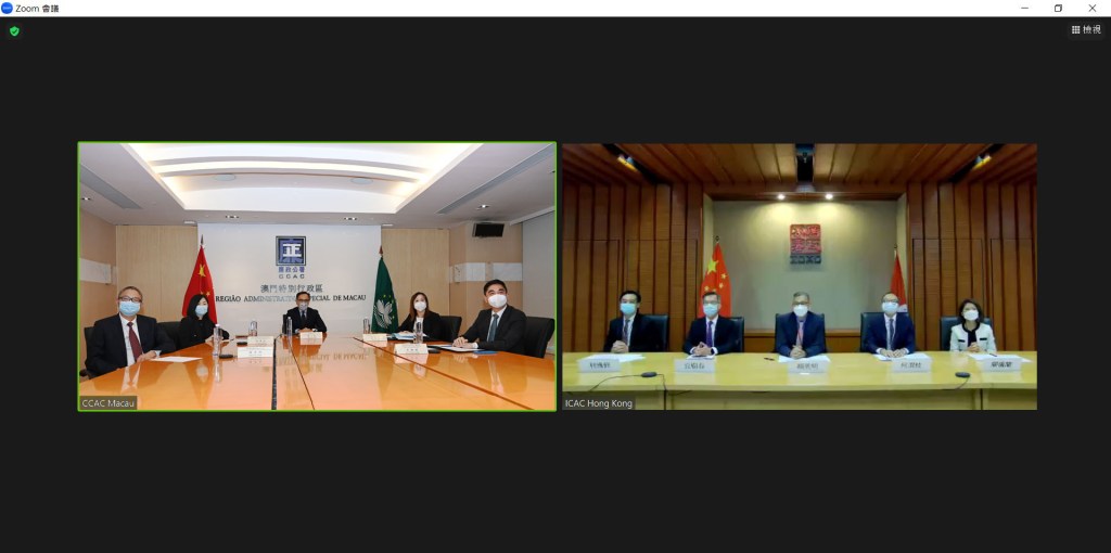 參與視像會議的還有廉署兩名助理專員歐陽湘和林燕生、廉政專員辦公室主任陳彥照及香港廉署執行處首長丘樹春等。