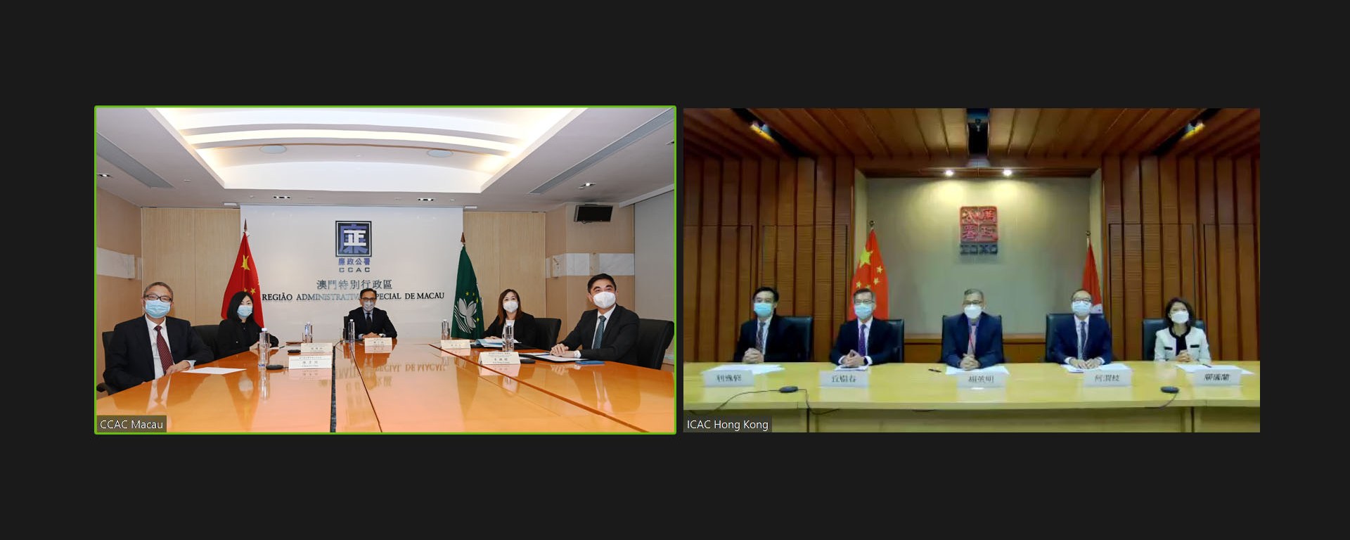 廉政專員陳子勁日前與香港廉政專員胡英明舉行視像會議,交流兩地廉政建設工作。陳子勁期望澳港兩地廉政公署能在反貪協查工作上繼續合作,並推動與內地建立三地司法互助。