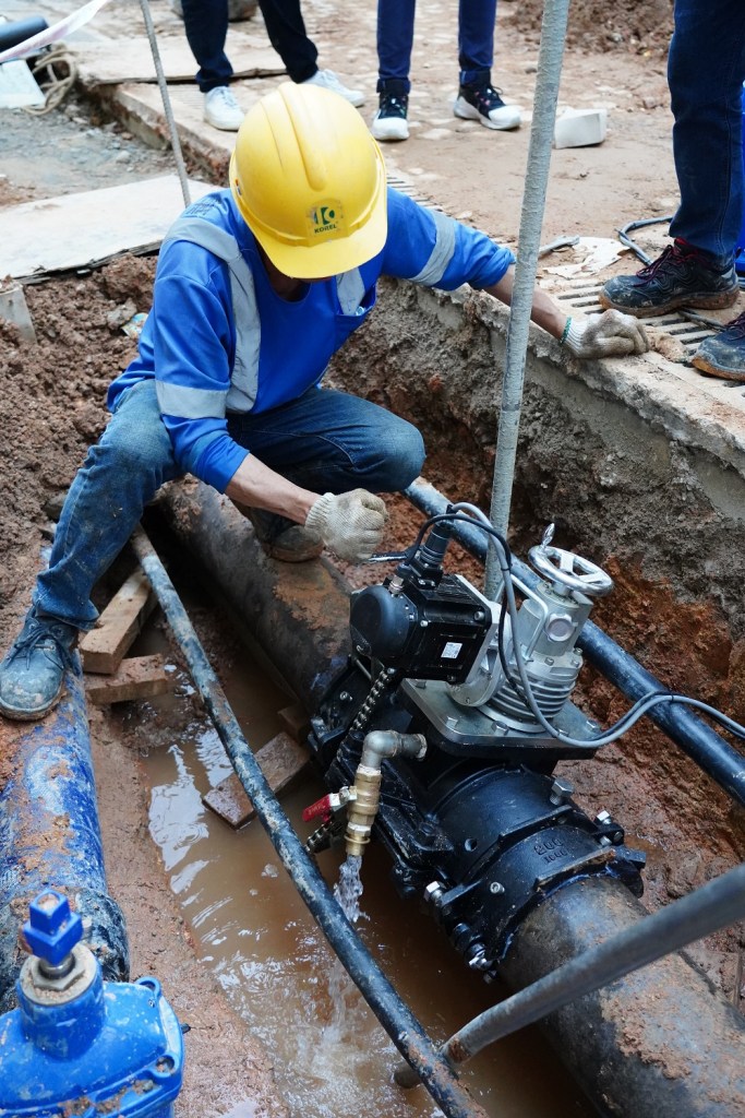 澳門自來水成功在本澳多個地點使用帶水施工技術,在水管上新增及更換損壞閥門。該技術優勢在於能有效縮短施工時間,施工期間更無須暫停供水,對周邊居民的用水及水質可能構成的影響減至最低。另外,新增的管道閥門將有助優化供水輸配運作。澳門自來水會持續關注及引入更多適合本澳的工程解決方案,將道路工程對居民的影響減至最低,進一步有效保障供水安全和穩定。