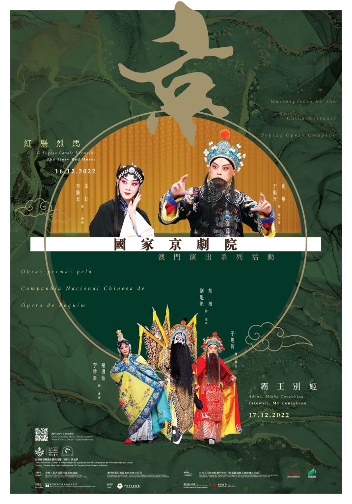 由中華人民共和國文化和旅遊部、澳門社會文化司主辦,中央人民政府駐澳門特別行政區聯絡辦公室宣傳文化部、澳門教育及青年發展局、中國對外文化集團有限公司協辦,並由澳門文化局承辦的國家京劇院澳門演出系列活動,將於12月16日及17日晚上7時半在澳門文化中心綜合劇院上演。
