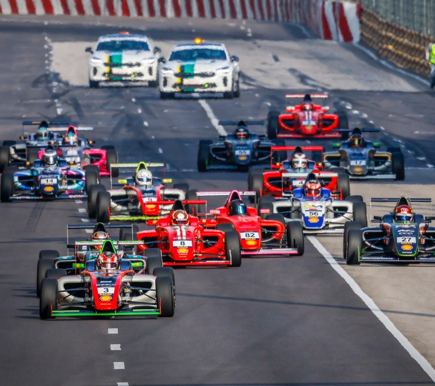 澳門車手鄭頴聰在金沙中國澳門格蘭披治四級方程式大賽的第二回合中勇奪勝利。