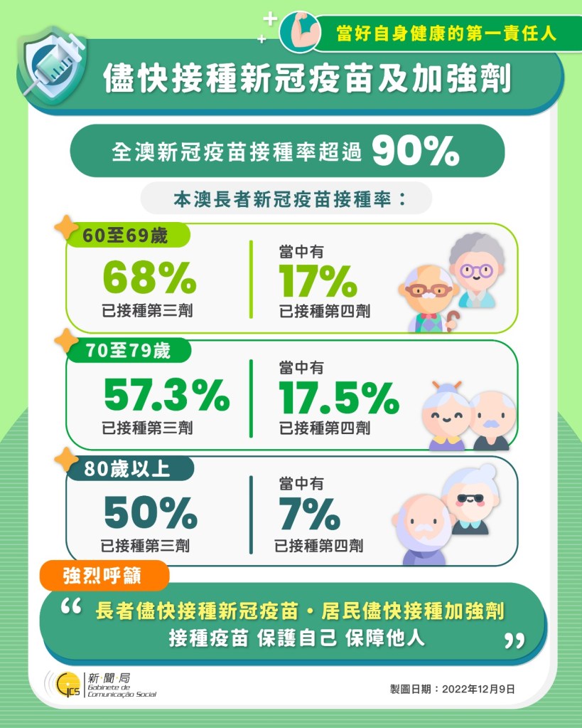 他又強調,只要本澳能有效應對疫情時便會進入第 3階段的適應期,故此,會根據每日新增感染個案是否呈走下波的趨勢來判斷。而本澳能否控制好疫情則是有賴全社會的共同努力和合作,例如居民戴好口罩和減少人群聚集、接種疫苗情況等。