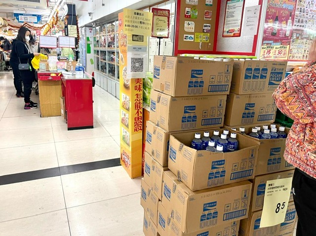 經向多家超市瞭解,負責人表示目前貨源充足,店方因應需求較大的貨品,如電解質飲料、喉糖等增加入貨數量,已儘快將貨品上架。