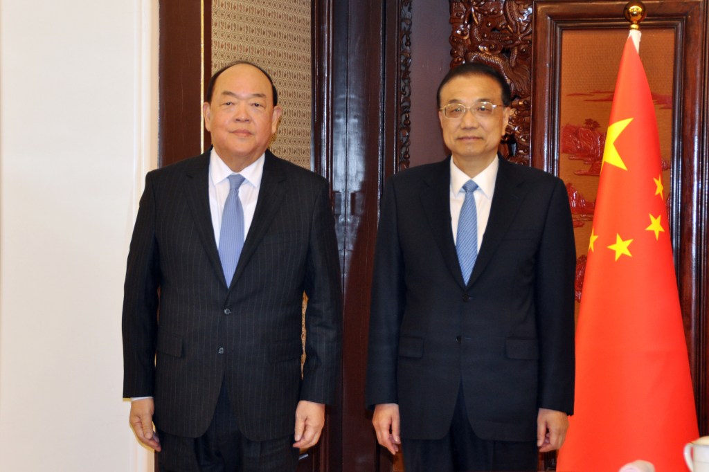 李克強總理在會面時表示,過去一年,行政長官帶領澳門特區政府務實而為,採取了一系列措施穩經濟、保就業、惠民生,維護了澳門的穩定發展的良好局面。中央政府對行政長官和特區政府的工作給予充分肯定。中央政府將繼續全面準確、堅定不移的貫徹「一國兩制」、「澳人治澳」、高度自治方針,完善特別行政區同憲法和基本法實施相關的制度和機制,全力支持行政長官和特區政府依法施政。