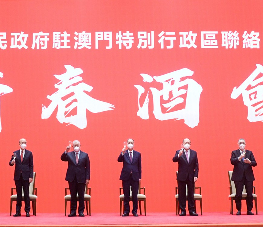 1月12日下午,中央人民政府駐澳門特別行政區聯絡辦公室2023年新春酒會在中國與葡語國家商貿合作服務平台綜合體舉行。中央人民政府駐澳門特別行政區聯絡辦公室主任鄭新聰和副主任黃柳權、嚴植嬋率各部門負責人向澳門同胞致以新春祝福。澳門特區行政長官賀一誠,全國政協副主席何厚鏵,崔世安先生,外交部駐澳門特派員公署特派員劉顯法,駐澳門部隊政委孫文舉,立法會主席高開賢,終審法院院長岑浩輝,全國政協常委廖澤雲,以及特區政府主要官員,澳區全國人大代表、政協委員等出席酒會。