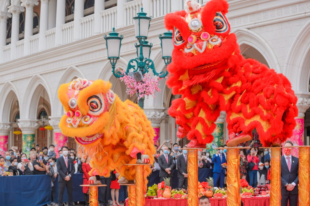 今個春節,澳門金沙度假區張燈結彩,濃厚的新年味將盈溢三大歐式主題綜合度假村的每個角落。年初二(1月23日),澳門威尼斯戶外人工湖泊﹑澳門倫敦人正門﹑澳門巴黎人正門及澳門金沙正門將一如以往進行傳統拜神祈福儀式及舞龍醒獅點睛表演,祝願各位新一年「兔」氣揚眉、「錢兔」似錦。