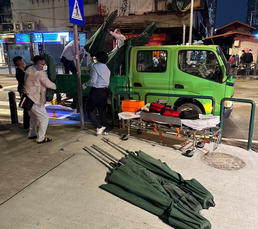 筷子基白朗古將軍大馬路小販區火警中,共19個小販檔受影響,市政署採取應急善後措施,抽派人手在附近連夜搭建臨時攤檔,協助有條件復業的瓜菜及水果攤販爭取翌日恢復營業。同時,對被焚毀的成衣檔、衣紙檔等,市政署亦會盡快開展修復工程。