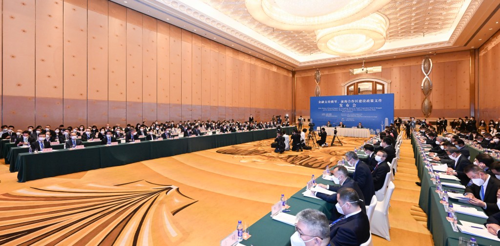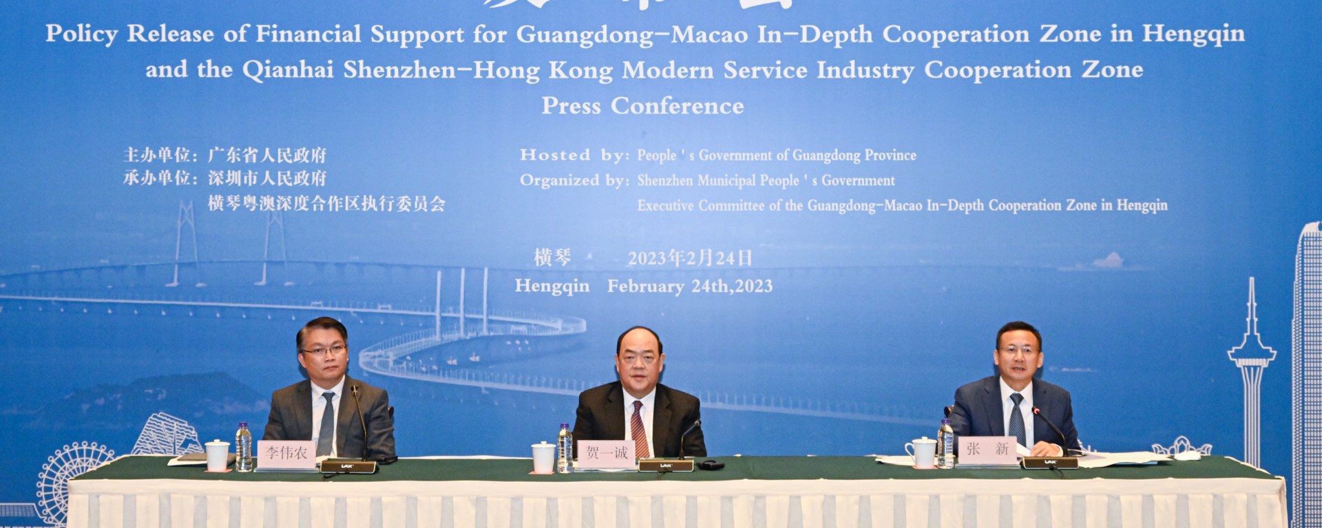 為深入貫徹中央的決策部署,落實《橫琴粵澳深度合作區建設總體方案》和《全面深化前海深港現代服務業合作區改革開放方案》要求,廣東省政府以視頻連線中國人民銀行、前海合作區的方式,日前在橫琴深合區舉辦《關於金融支持橫琴粵澳深度合作區建設的意見》和《關於金融支持前海深港現代服務業合作區全面深化改革開放的意見》政策文件發佈會。橫琴深合區管委會主任、澳門特別行政區行政長官賀一誠,中國人民銀行副行長、國家外匯管理局局長潘功勝,廣東省副省長、橫琴深合區管委會副主任張新,深圳市委常委、前海管理局局長曾湃出席並講話。