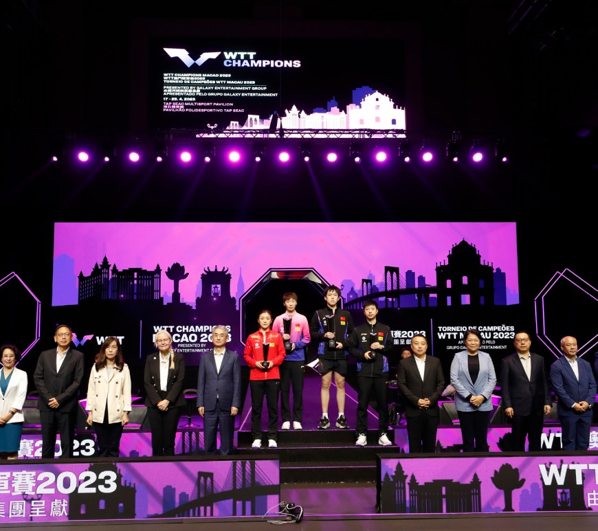 由體育局、世界乒乓球職業大聯盟(WTT)及銀河娛樂集團主辦、澳門乒乓總會協辦的「WTT 澳門冠軍賽 2023 ─ 由銀河娛樂集團呈獻」,4月23日於塔石體育館上演冠軍爭奪戰,男、女單打冠軍分別由王楚欽及王曼昱奪得。澳門特別行政區代理行政長官張永春出席活動觀賞賽事,並擔任頒獎嘉賓。