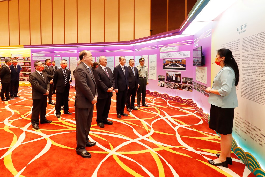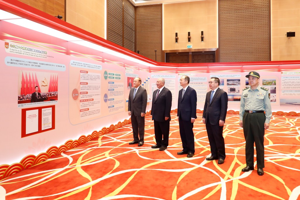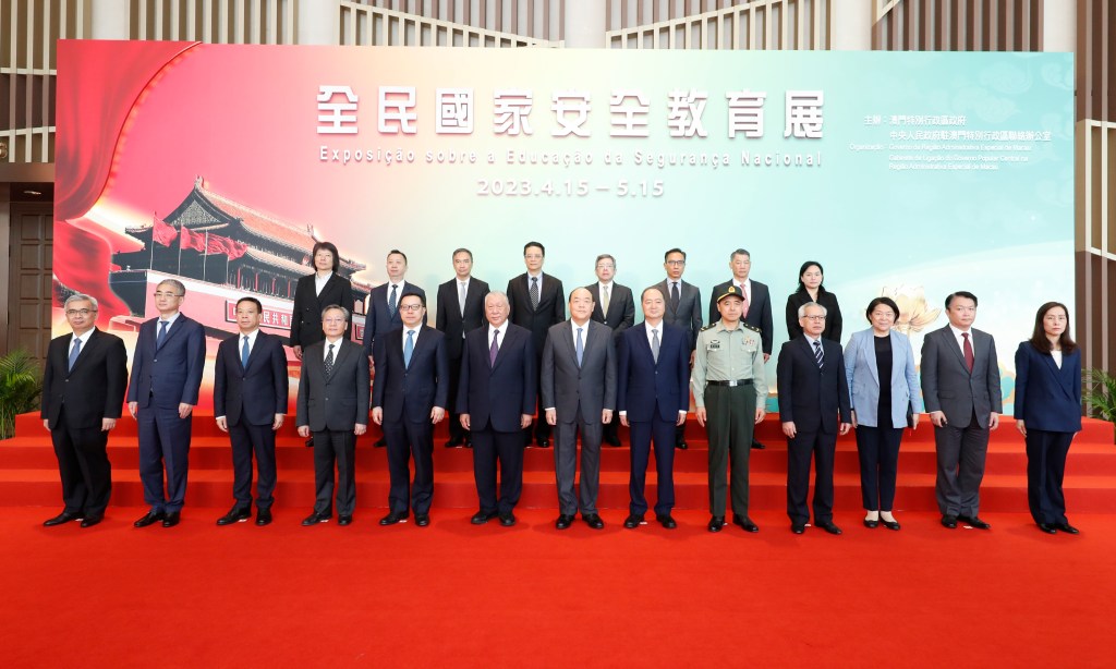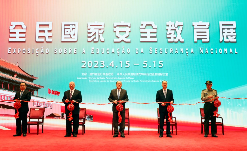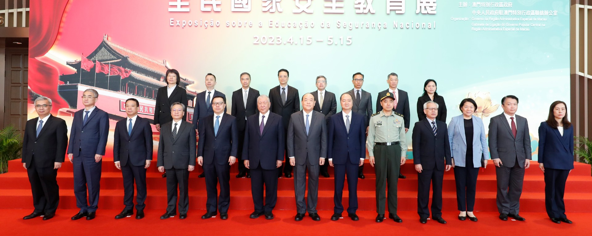 由澳門特別行政區政府與中央人民政府駐澳門特別行政區聯絡辦公室合辦的「全民國家安全教育展」上午在中國與葡語國家商貿合作服務平台綜合體揭幕。開幕禮由行政長官、澳門特別行政區維護國家安全委員會主席賀一誠,全國政協副主席何厚鏵,中央人民政府駐澳聯絡辦公室主任、澳門特別行政區維護國家安全委員會國家安全事務顧問鄭新聰,外交部駐澳特派員公署署理特派員孫向陽及中國人民解放軍駐澳門部隊政治委員孫文舉主持,出席的政府官員及社會各界人士逾400人。