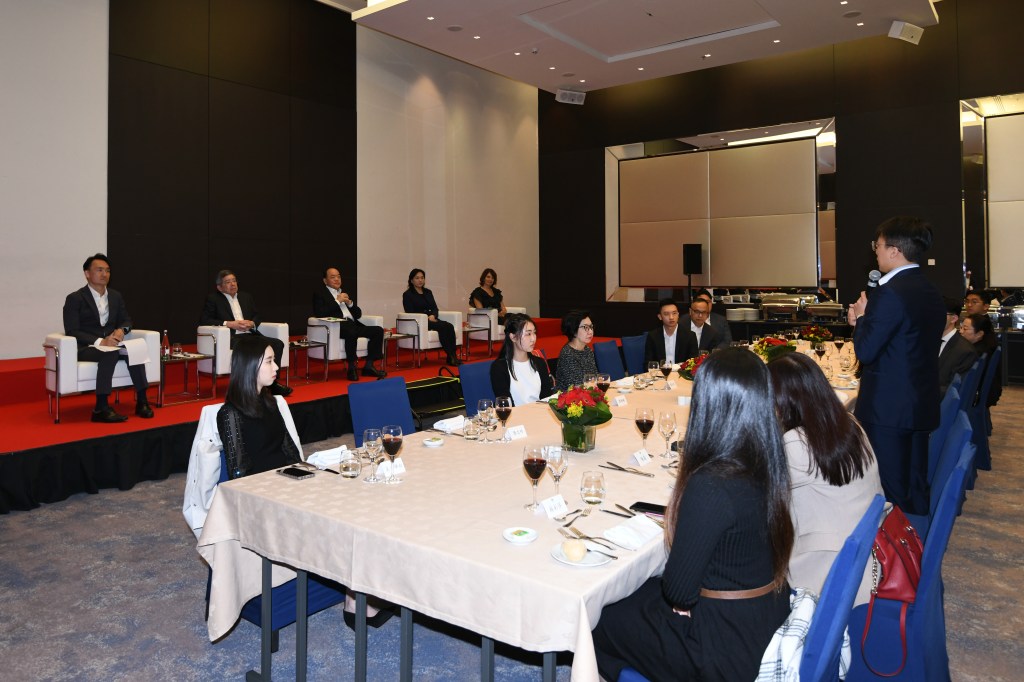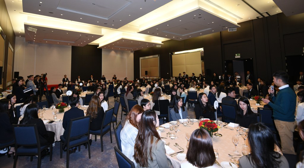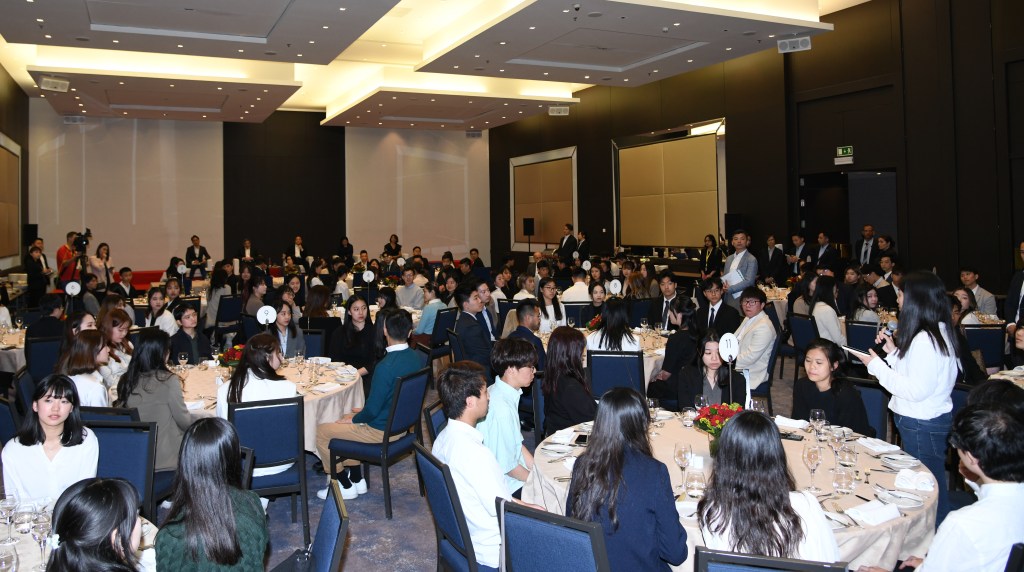 學生黎曉蒽代表出席的在葡澳生發表感言。她感謝行政長官首次出訪國外就安排與學生會面,聆聽學生的聲音。亦感激特區政府在疫情期間,在防疫物資十分緊缺的情況下,仍為在外的澳門學生提供購買口罩服務,並設立網上聯絡群組,關心學生需要。