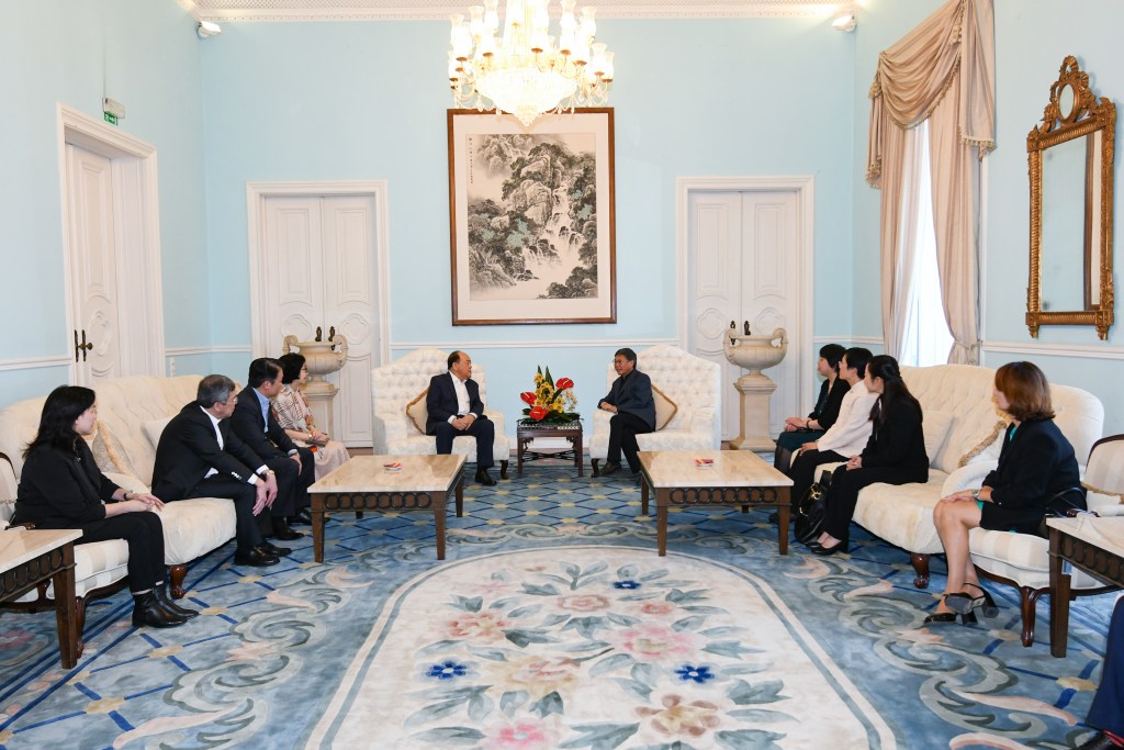 會面中,行政長官首先感謝外交部及中國駐葡大使館對特區政府代表團訪葡工作的支持,並表示中葡兩國始終保持良好關係,澳葡之間的歷史淵源及緊密交往,有助進一步鞏固中葡友誼。